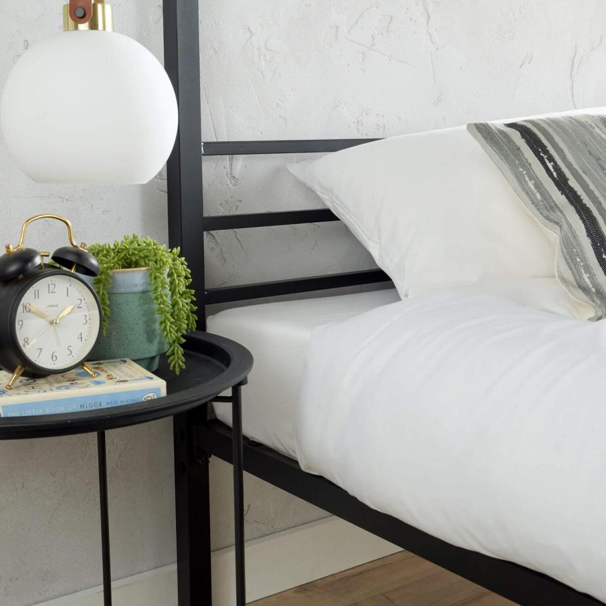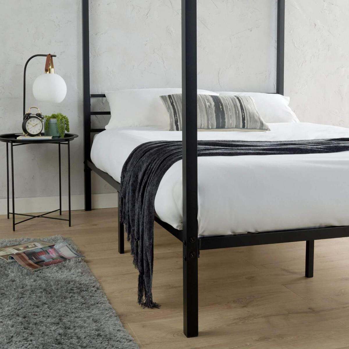 Sierra is grand, impressive and ultra-modern in its design. A regal four poster bed frame with a sleek canopy, this piece holds its own and creates the perfect centrepiece for your bedroom space. Finished in standout solid black, it is easy to contrast other furnishings by using neutrals, or pair other black painted furniture for a complementing look. The canopy and frame has been expertly made from durable, hard wearing metal which will withstand the test of time. This gives your confidence in your bed that your choice of design will be long-lasting. Sierra is definitely a modern addition to any home, and its sleek design is certainly impressive. This piece is suitable for any bedroom and comes in single, double and king sizes.