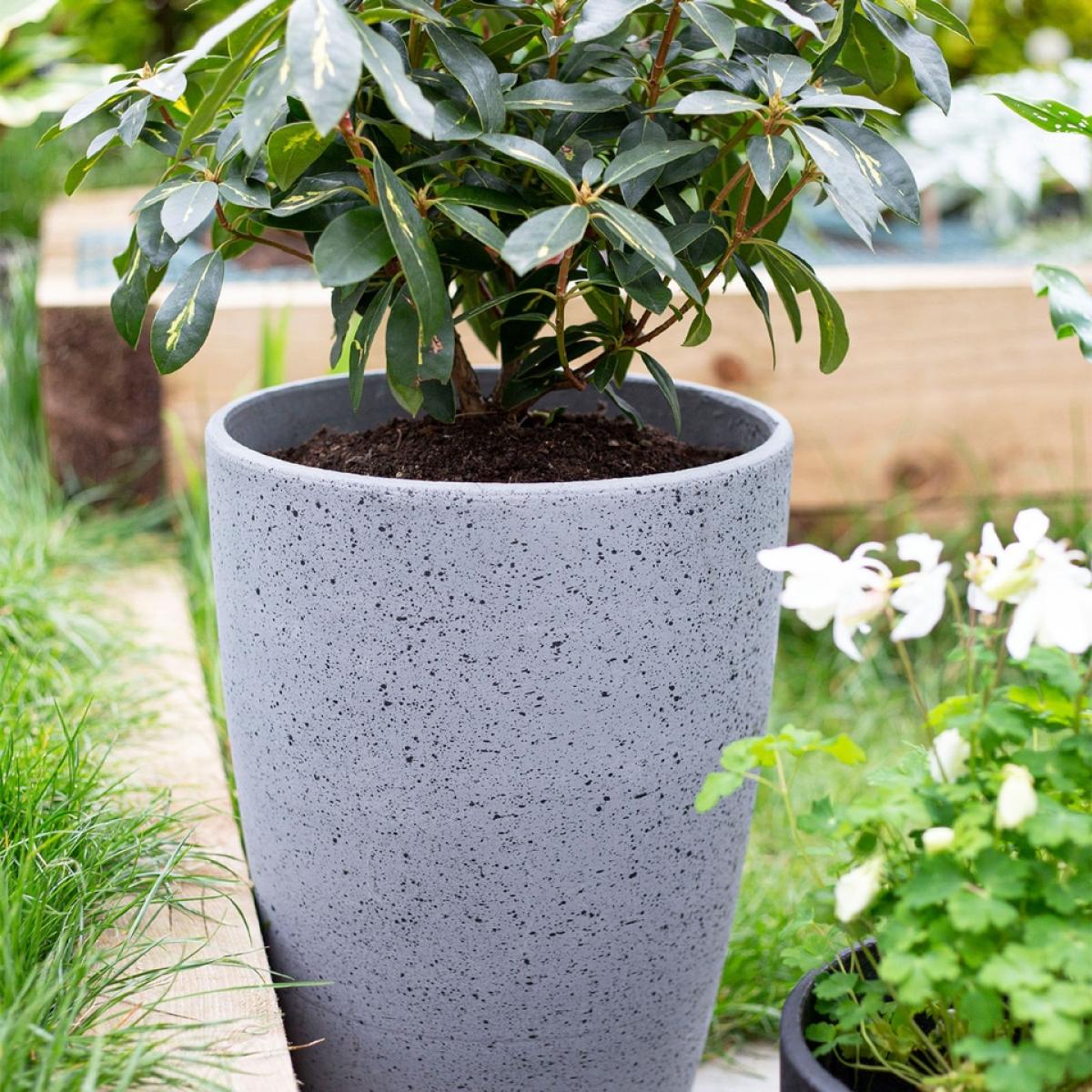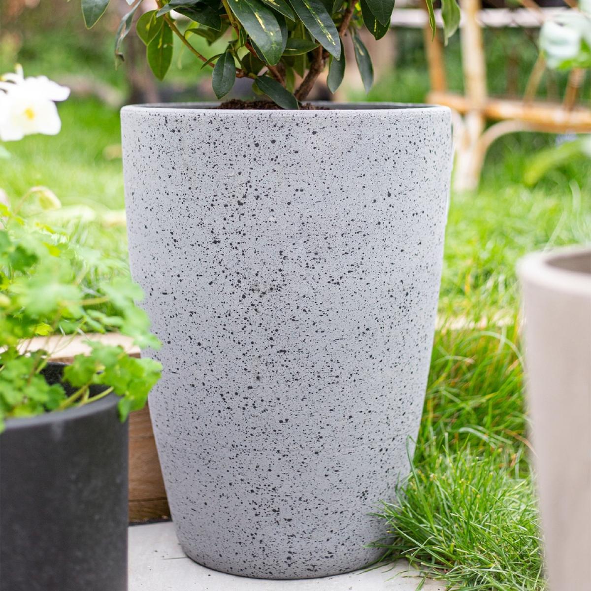 The 25cm grey Sierra Tall plant pot will add style where ever you choose to place it. A contemporary style planter with a sleek granite effect finish. Made from composite materials, this pot is lightweight, frost and UV resistant. Available in Taupe and Black.