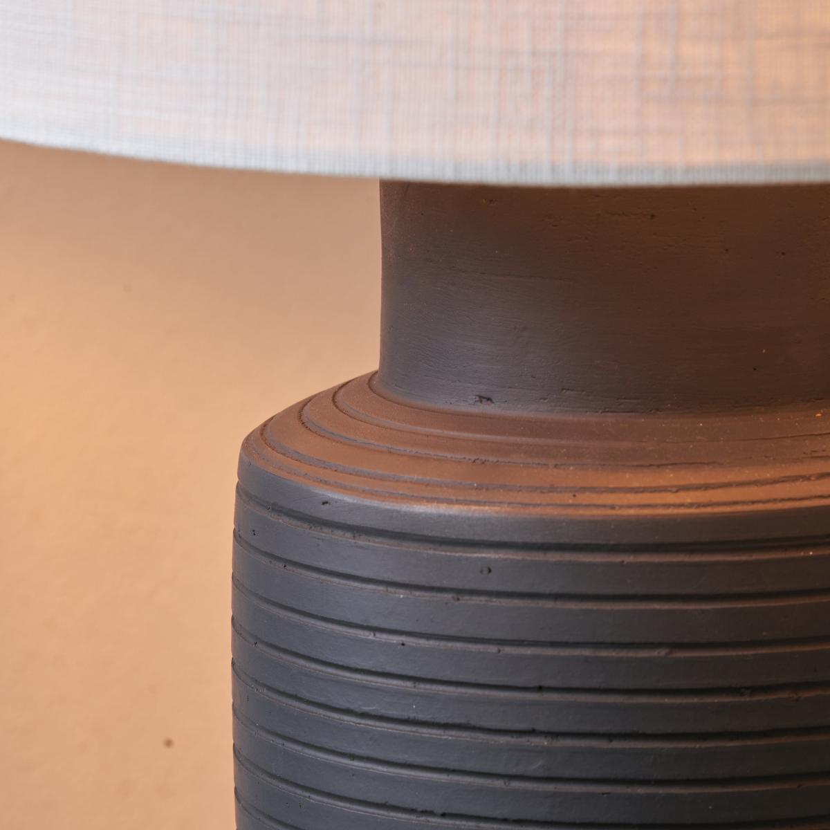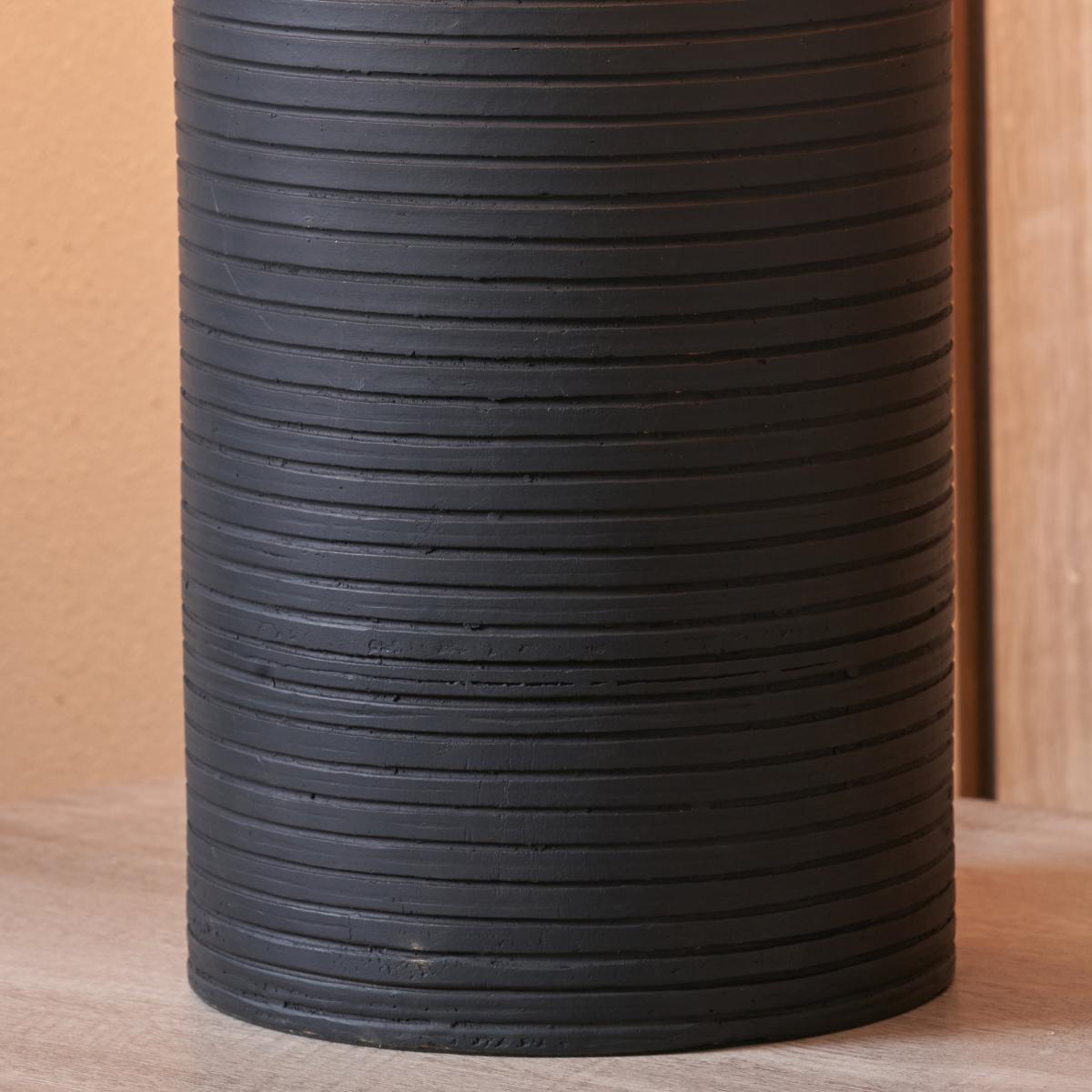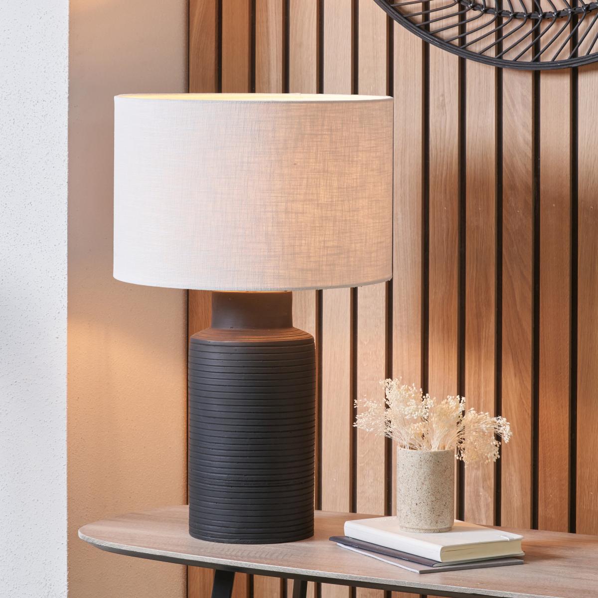 Sierra Tall Ribbed Terracotta Table Lamp with 35cm Linen Drum Shade Black
