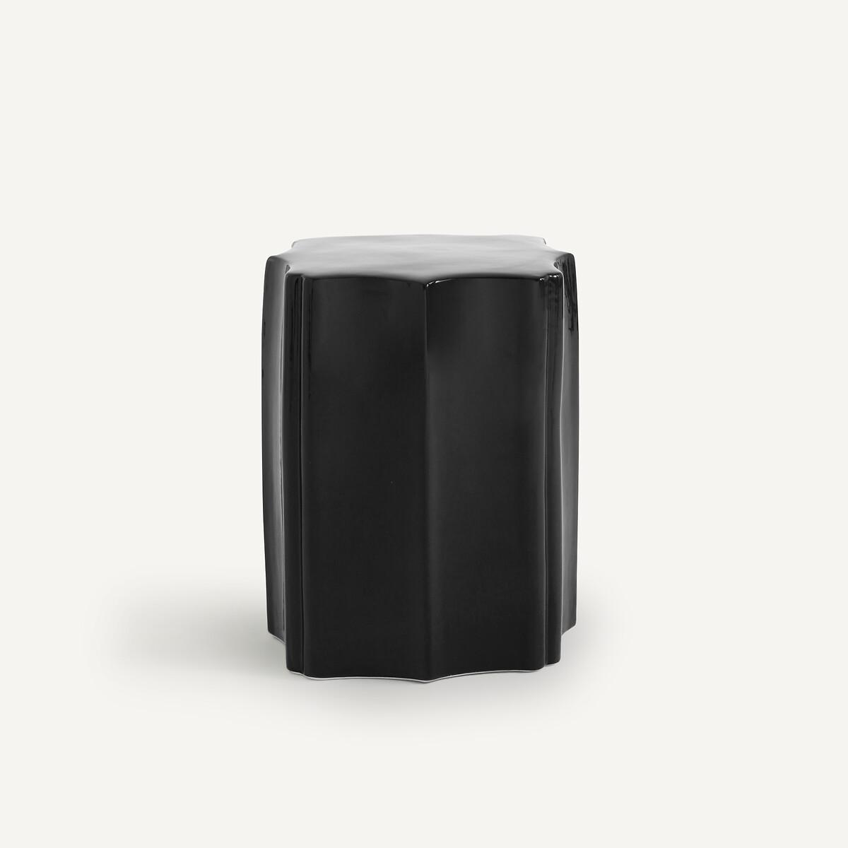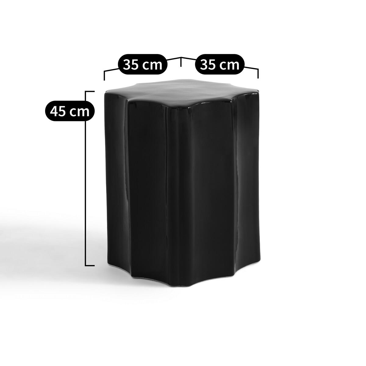 A graphic line and a baroque spirit... This side table in ceramic is aesthetic and functional. It can also be used as a bedside table. Works well on its own or as part of a collection. Product Details • Enamelled ceramic • Each piece is unique • Sold pre-assembled. Dimensions • Width: 35cm • Height: 45cm • Depth: 35cm Parcel dimensions and weight1 parcel • L44 x H55 x D44cm, 11kg
