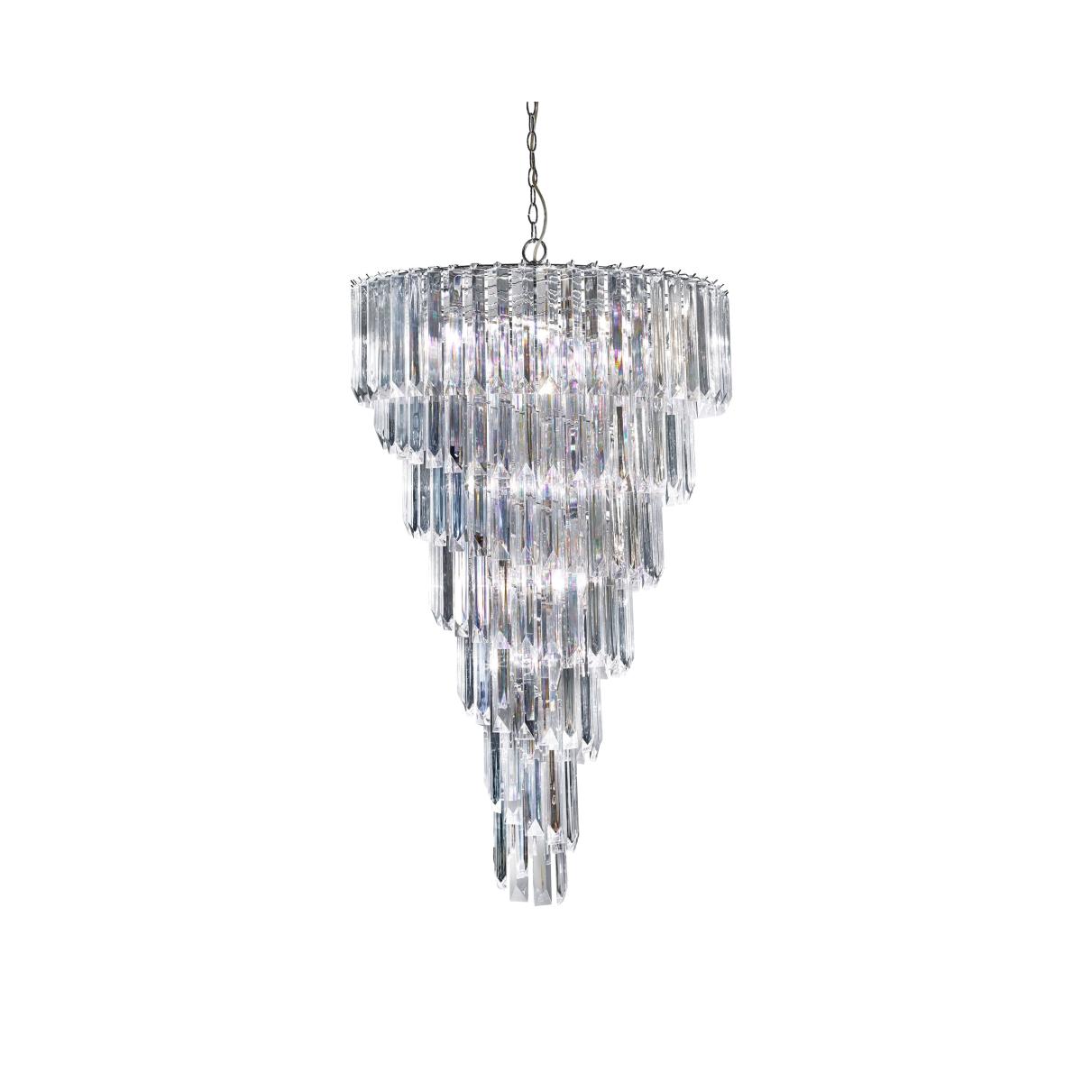 I love this chandelier for its striking yet versatile design. The chandelier works particularly well in contemporary or glamorous interiors, adding a touch of elegance with its chrome finish and cascading crystal elements. It’s a great focal point over dining tables or in high-ceiling living spaces where it can really make an impact. Practical styling tips include pairing it with neutral colour schemes to highlight its reflective qualities, or layering with complementary lighting to create a balanced ambiance. When fitting, ensure enough clearance space around it so it doesn’t overwhelm the room but still commands attention. It’s a bold statement piece that elevates any interior with a sophisticated edge.