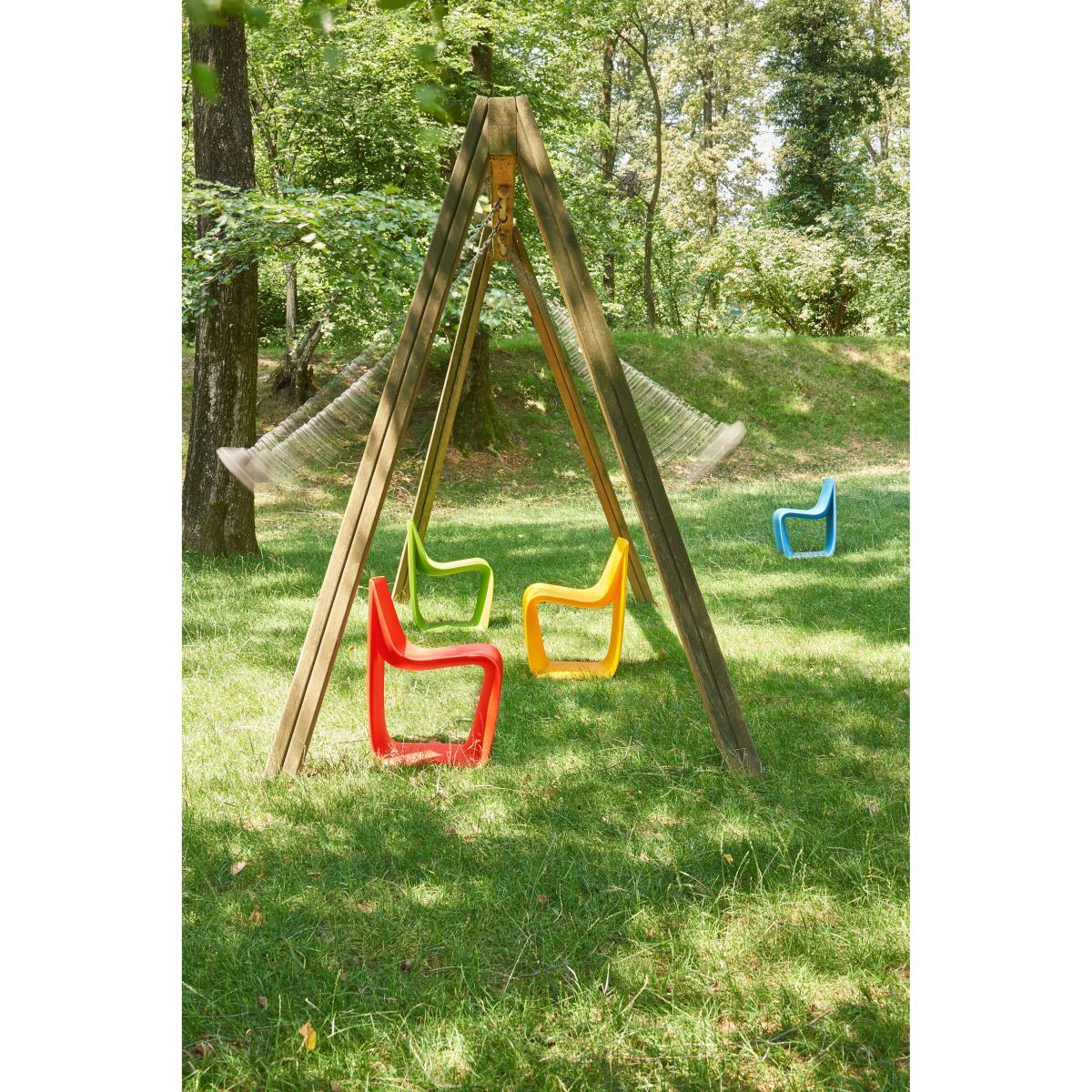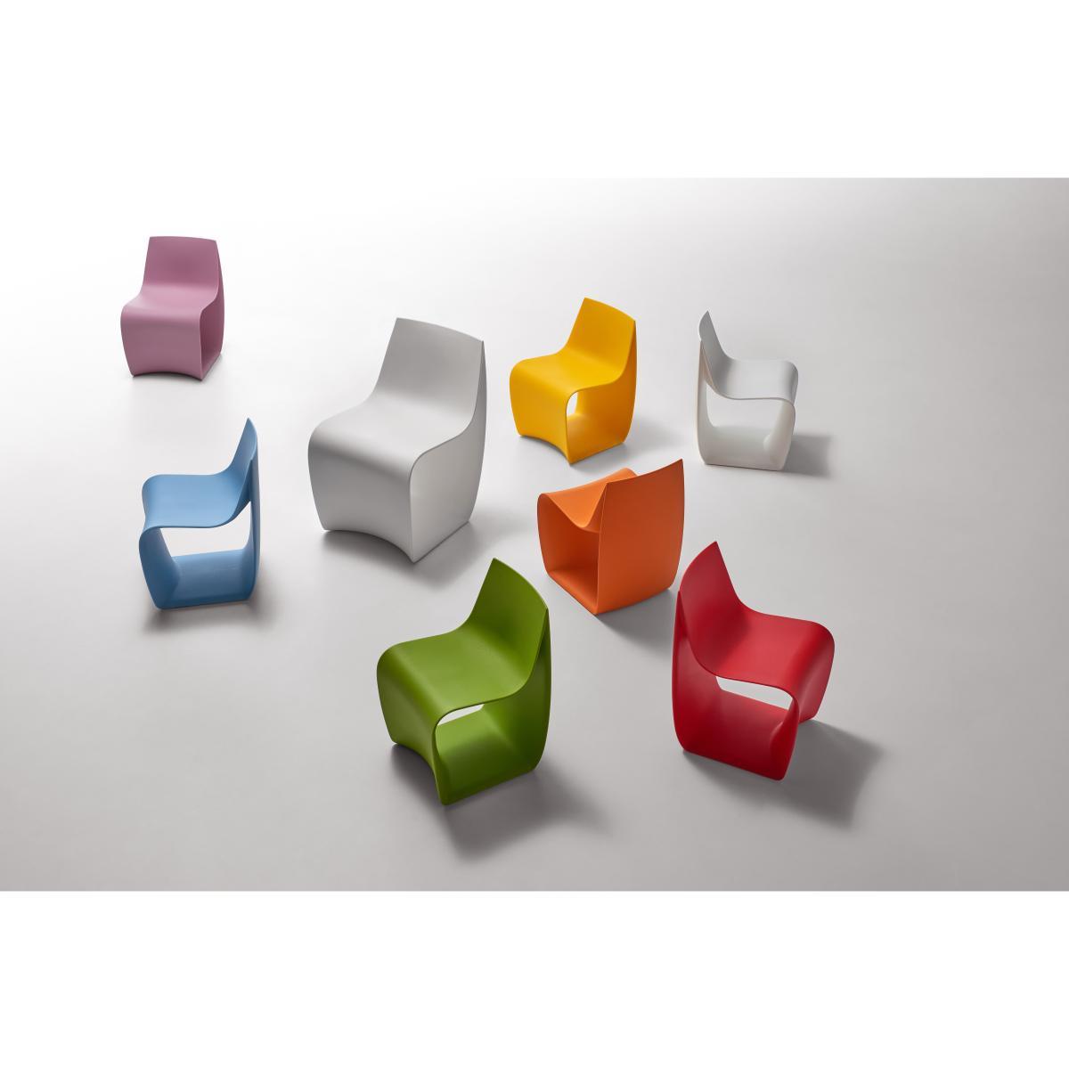 To celebrate its tenth birthday, the iconic Sign armchair created in 2007 by designer Piergiorgio Cazzaniga now comes in a mini-version for kids. Designed for 3-10-year-olds, the Sign Baby comes in a variety of bright colours. Made entirely of polyethylene, this hard-wearing, lightweight armchair can be used indoors and out. It will follow your little ones wherever they go: From the bedroom to the lounge, and the garden to the sand pit. The open structure with its curved lines is a true sculpture! In profile, the sleek silhouette of this armchair looks like a sinuous ribbon hanging free in space. A great way to get your little angels to appreciate design from an early age! We recommend you don’t allow water to pool on the seat, tilting it forward to allow rainwater to run off. Put it away or cover it up in winter and wash exposed surfaces with water and a neutral soap.