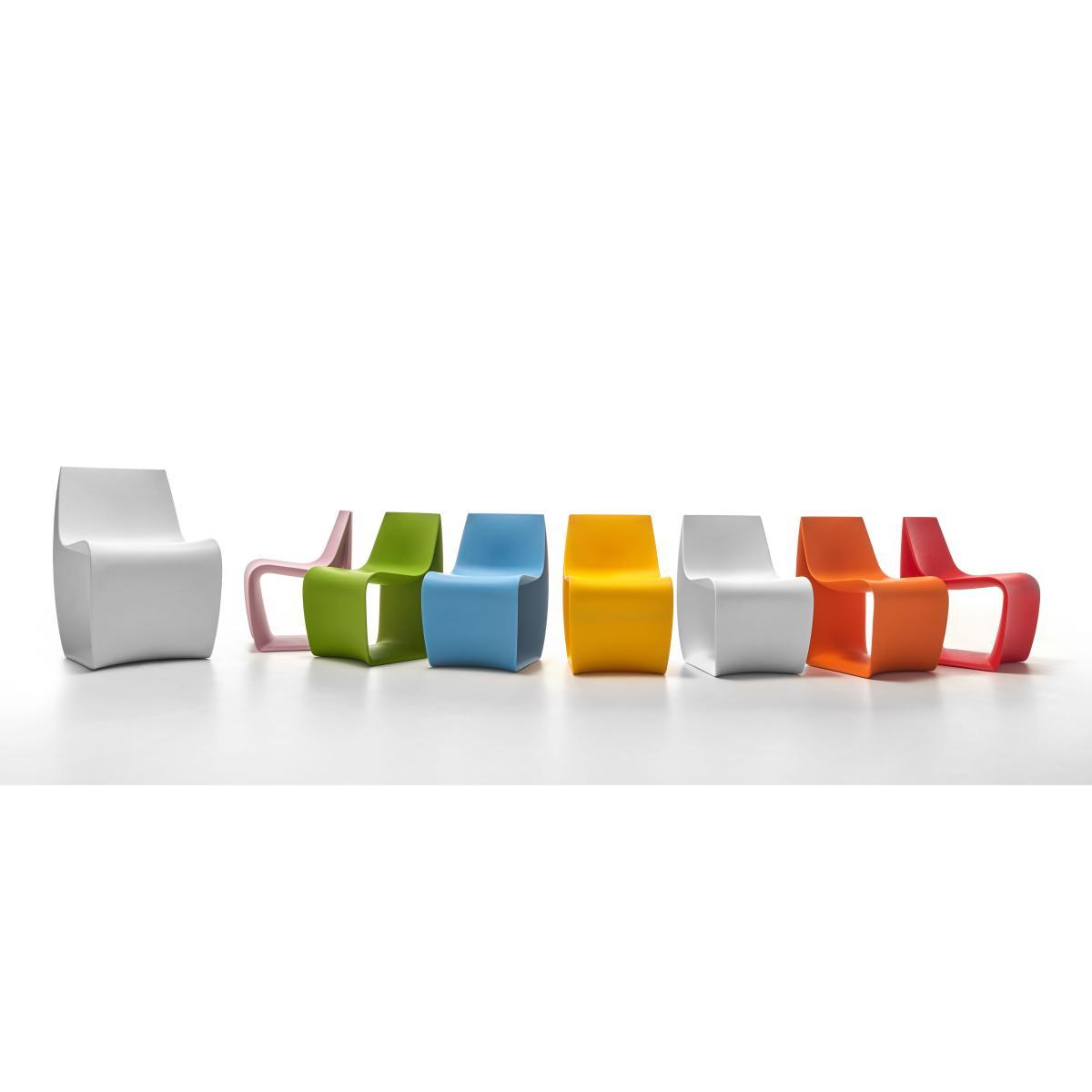 To celebrate its tenth birthday, the iconic Sign armchair created in 2007 by designer Piergiorgio Cazzaniga now comes in a mini-version for kids. Designed for 3-10-year-olds, the Sign Baby comes in a variety of bright colours. Made entirely of polyethylene, this hard-wearing, lightweight armchair can be used indoors and out. It will follow your little ones wherever they go: From the bedroom to the lounge, and the garden to the sand pit. The open structure with its curved lines is a true sculpture! In profile, the sleek silhouette of this armchair looks like a sinuous ribbon hanging free in space. A great way to get your little angels to appreciate design from an early age! We recommend you don’t allow water to pool on the seat, tilting it forward to allow rainwater to run off. Put it away or cover it up in winter and wash exposed surfaces with water and a neutral soap.