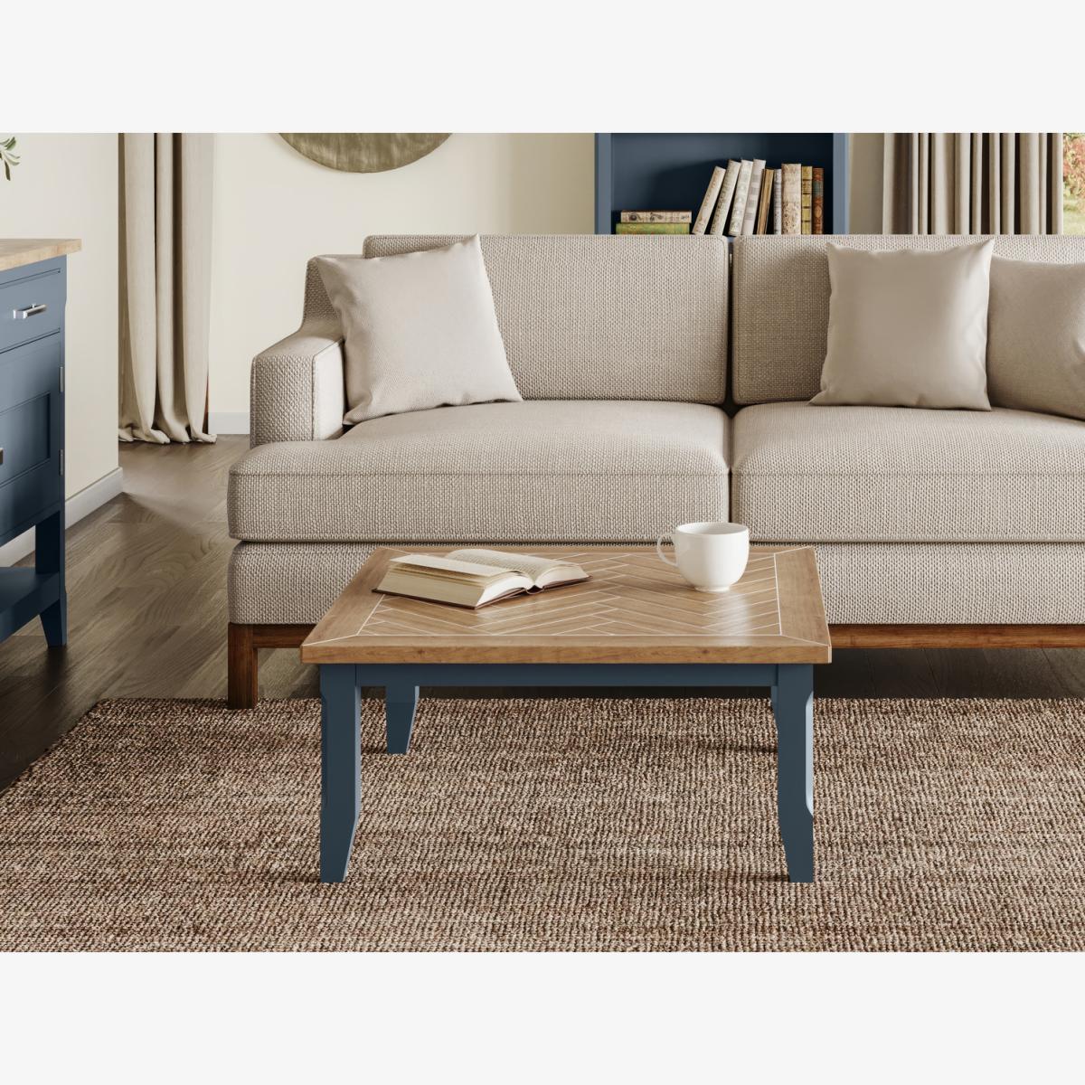 The Signature Blue Square Open Coffee Table exemplifies meticulous craftsmanship, particularly evident in its intricate hand-finishing process. From the oak parquet top, each detail is meticulously attended to. Through delicate distressing, the wood's inherent charm is heightened before a fine layer of white paint is meticulously applied and hand-rubbed to perfection. The final touch, a resilient clear lacquer, not only enhances the aesthetic allure but also ensures enduring durability, resulting in a truly remarkable appearance. With dimensions measuring H35 x W75 x D75 cm, this coffee table strikes a perfect balance between size and functionality, making it suitable for a variety of living spaces. Rest assured, each piece is accompanied by a comprehensive FIVE YEAR warranty, covering any manufacturing-related issues. This warranty underscores our unwavering commitment to delivering products of the highest quality and ensuring utmost customer satisfaction. Explore the entirety of our exclusive Signature Blue collection to discover additional pieces that enhance your living space. Crafted with premium materials and timeless design, every item is meticulously crafted to withstand the test of time, radiating elegance and sophistication in every detail. While our collection boasts high-end craftsmanship designed to endure a lifetime, it's important to note that minor assembly may be required. Nevertheless, we strive to ensure a seamless experience for our customers, allowing you to enjoy the beauty and functionality of our products with ease.