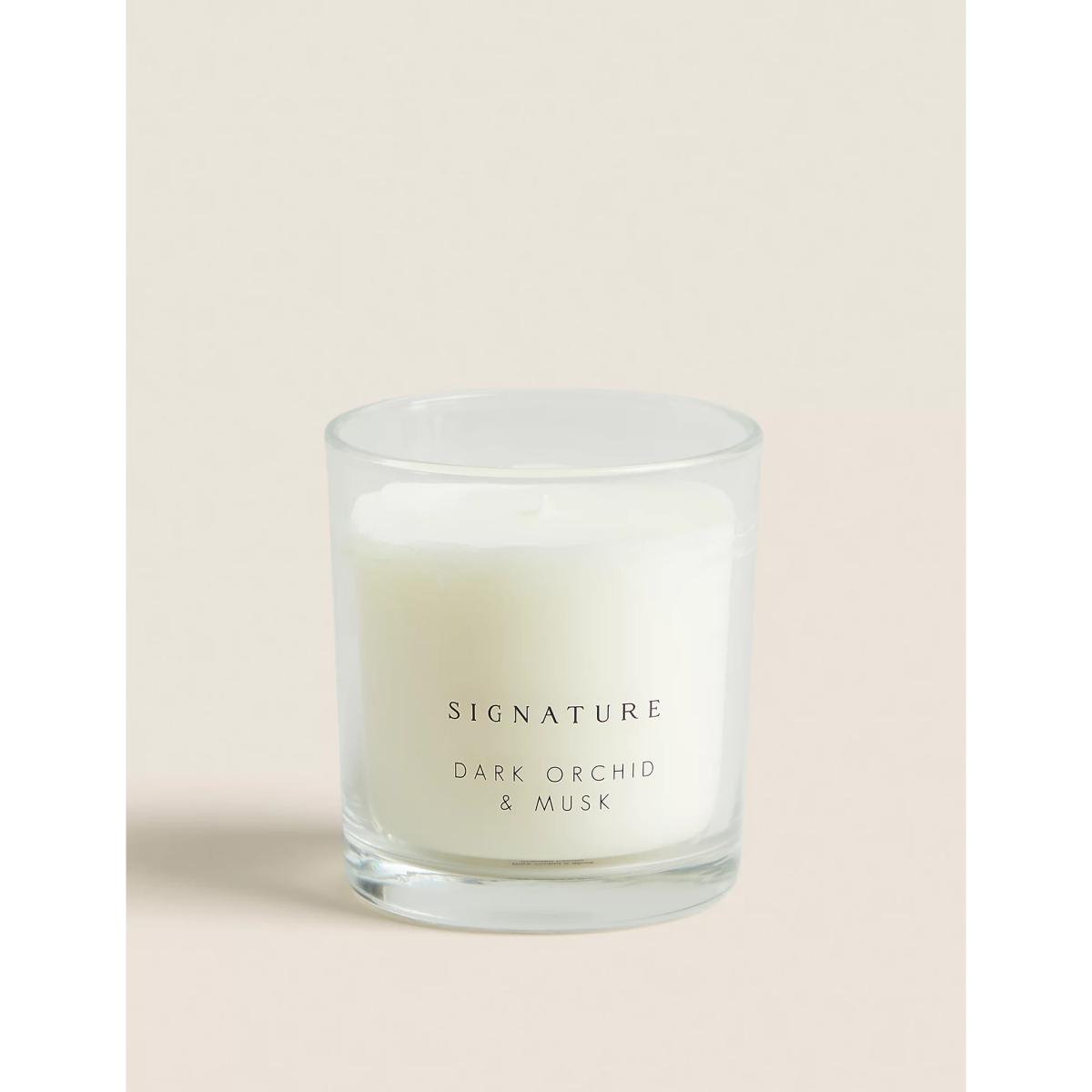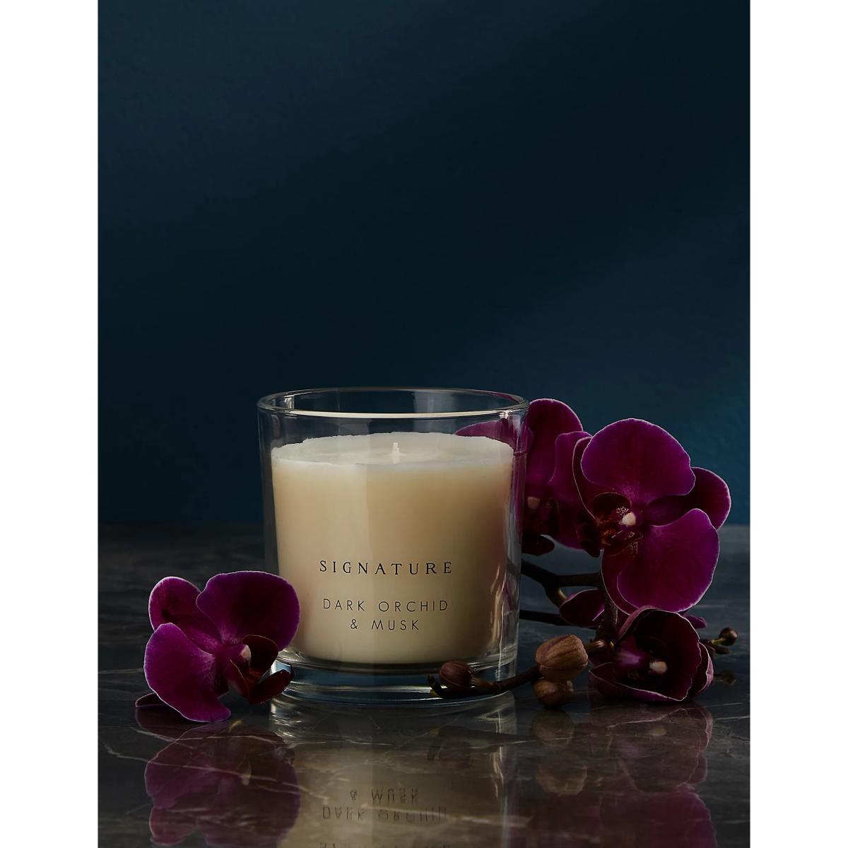 Explore the exotic darkness of the orchid flower with this Signature scented candle. Infused with musky notes, warming amber and spicy patchouli, it brings an opulent atmosphere to your home.