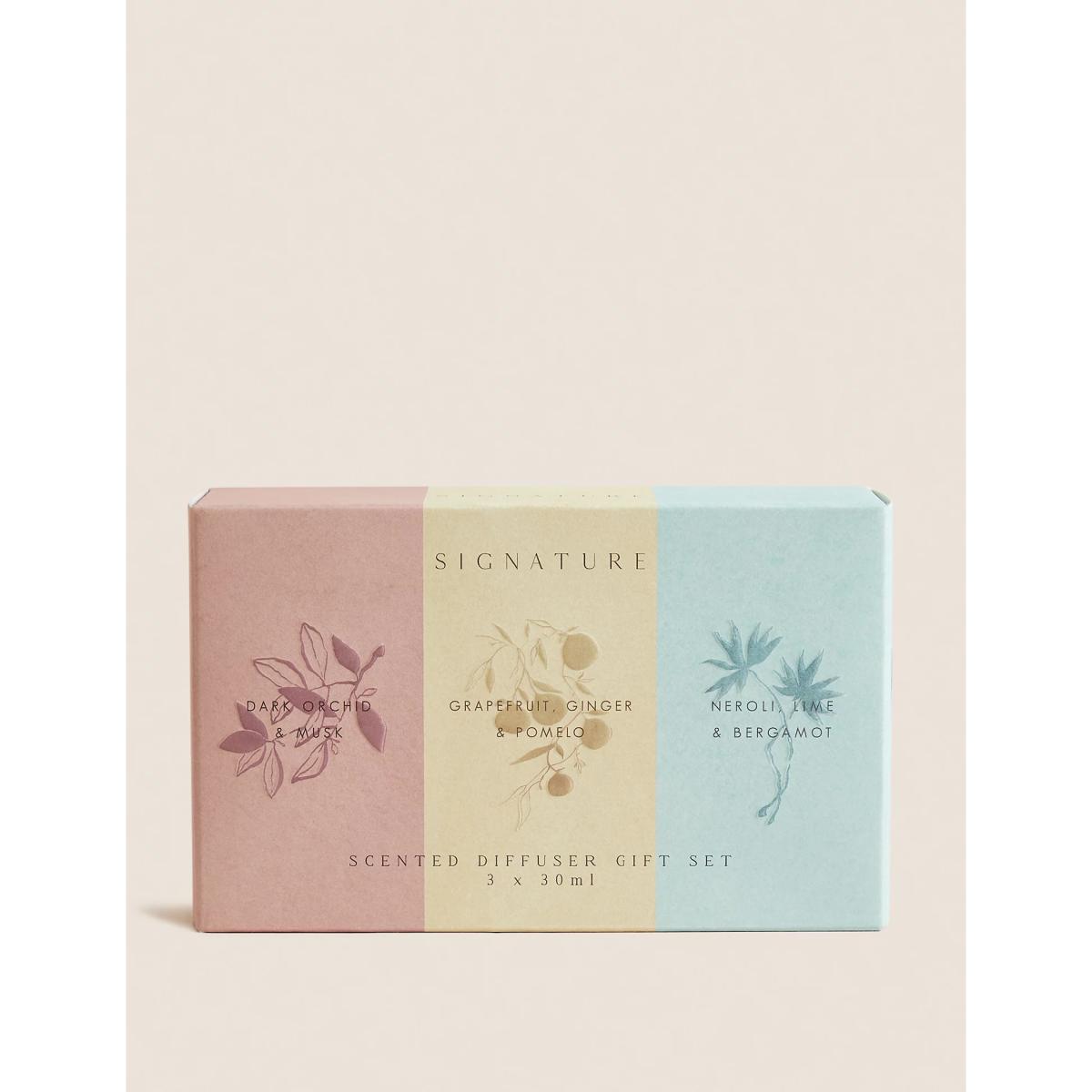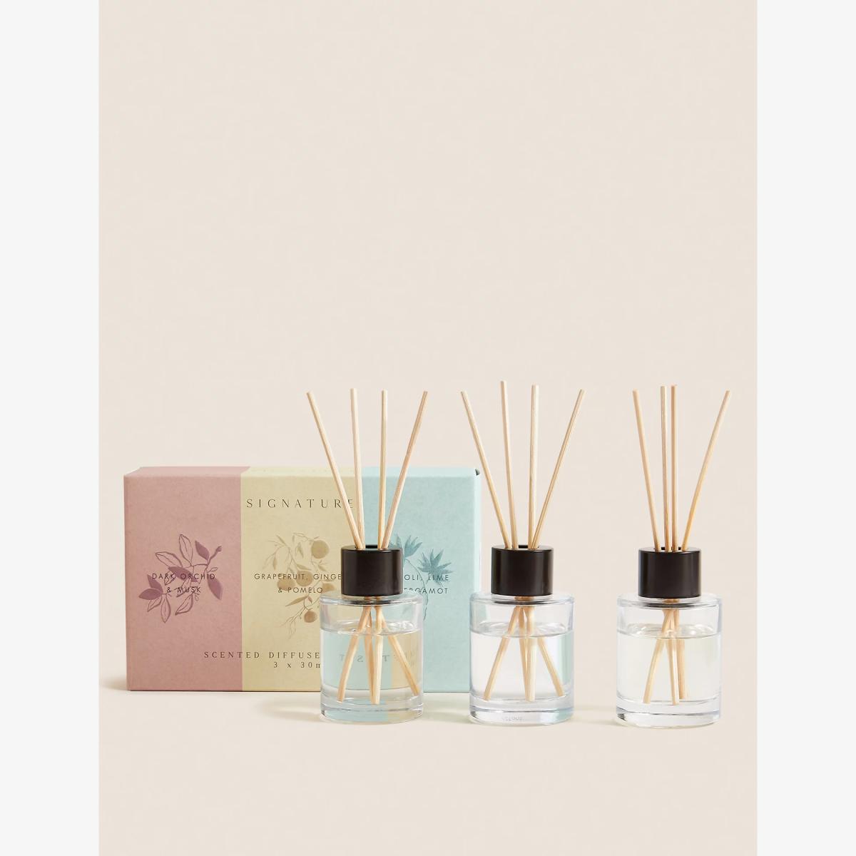 Give friends and loved ones the gift of a beautifully scented home with this mini diffuser set from our Signature range. Packaged in a pretty box, the set includes three reed diffusers with the scents of neroli, lime and bergamot, grapefruit, pomelo and ginger, and dark orchid and musk.