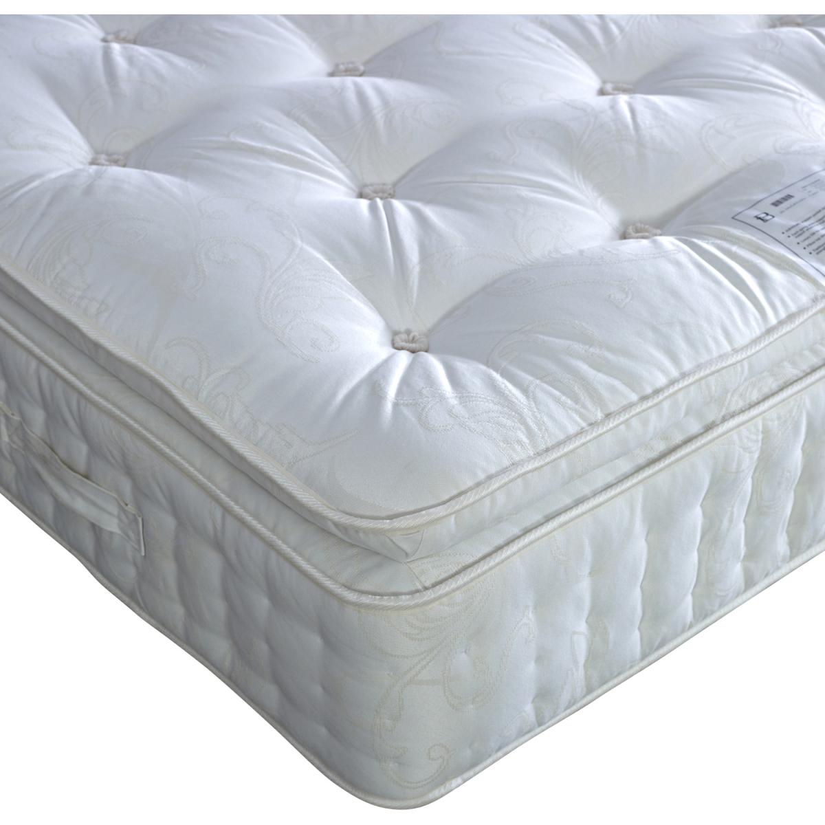 A beautiful pocket sprung mattress with a comfort pillow top. A modern mattress with an impressive 33cm height. Filled with wool, cotton and silk for a perfect nights sleep. Adorned with a damask fabric and a side stitched border. The luxurious and ample fillings are hand tufted for durability.
