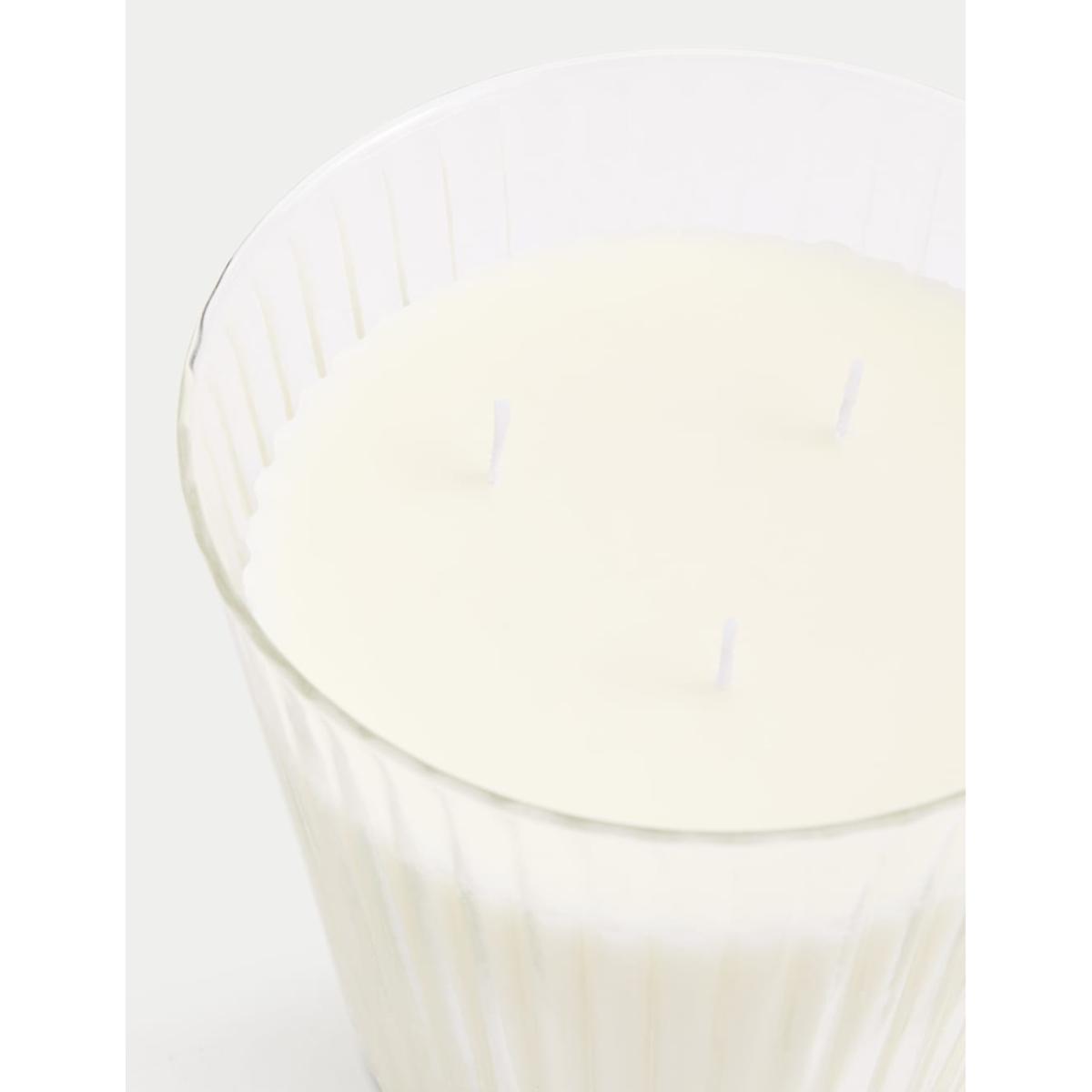 Welcome the soft fragrance of velvet iris to your home with this three-wick candle from our Signature collection. It's presented in a beautifully ridged glass vessel that gently diffuses light. The floral scent features calming lavender, delicate iris and captivating jasmine, along with a comforting base of vanilla and patchouli. This fragrance is part of the Amber family of fragrances. Amber scents are rich and warming and may contain notes such as vanilla, pepper, tonka bean and amber.