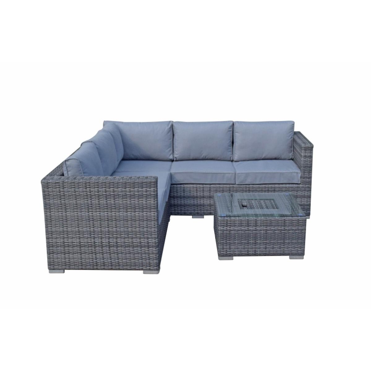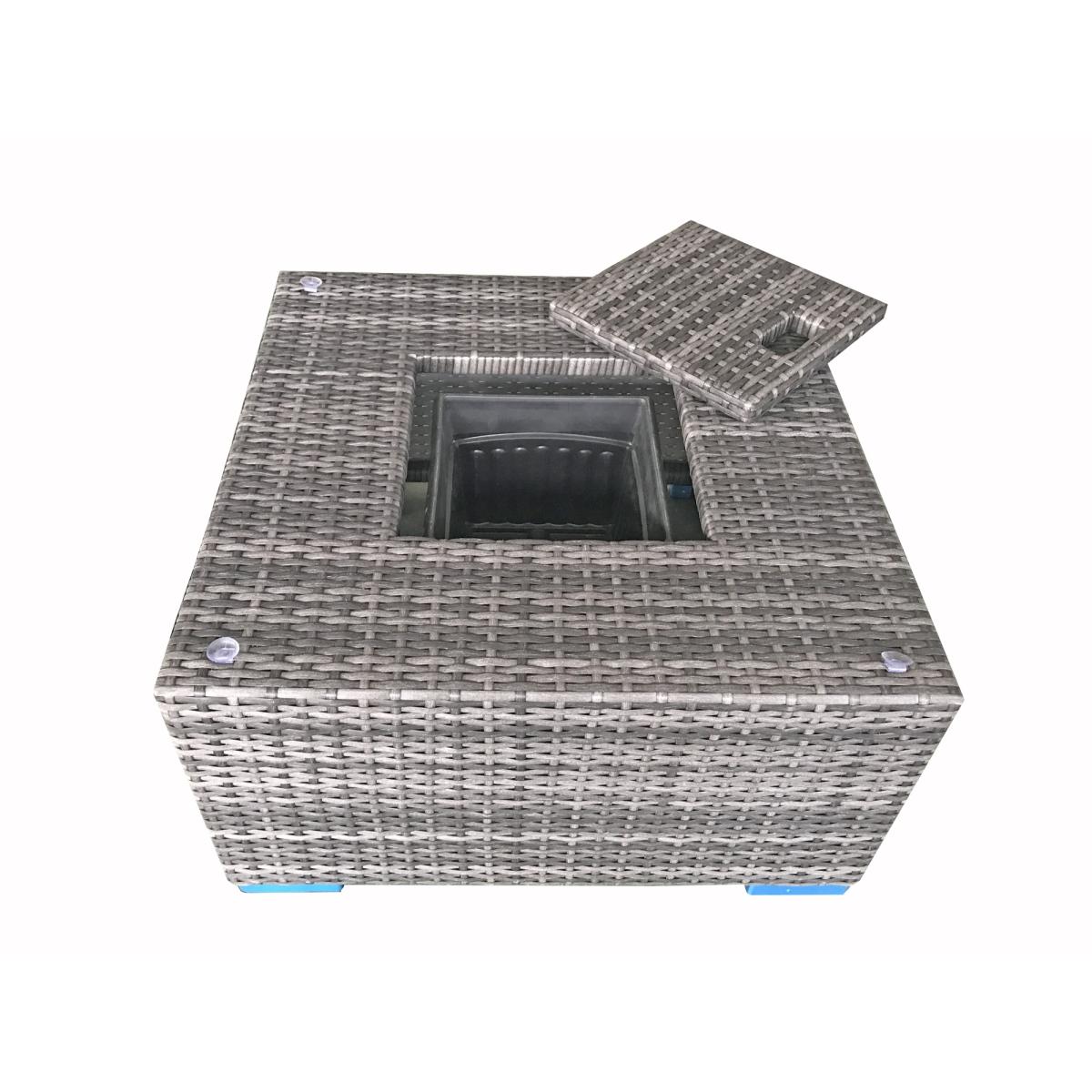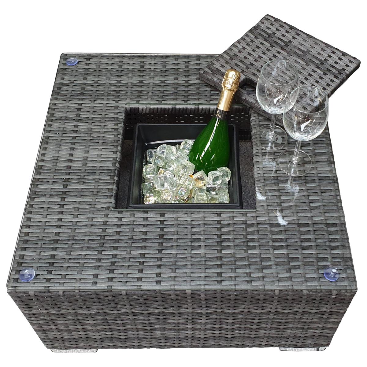 Add a touch of luxury to your outdoor space with the Signature Weave Georgia Corner Sofa with Ice Bucket. Designed for both style and practicality, this elegant set features sturdy aluminium frames wrapped in a grey rattan weave, which is UV treated and weatherproof - ensuring durability and a sophisticated aesthetic. The spacious corner sofa offers ample seating for family and guests, with deep-filled grey/silver shower-proof cushions providing superior comfort for relaxed lounging. A standout feature of this set is the integrated ice bucket, seamlessly built into the table, keeping drinks chilled and within easy reach—perfect for entertaining on warm days. With its weather-resistant materials and contemporary neutral tones, the Georgia Corner Sofa is both stylish and functional, making it an ideal centrepiece for any patio or garden. Whether hosting a summer gathering or enjoying a quiet evening outdoors, this set delivers both elegance and convenience for outdoor living. Partial assembly is required. KEY FEATURES: Set includes: 1 x Corner sofa, 1 x Square Coffee Table with integrated Ice Bucket Tray Solid aluminium frame handcrafted in a beautiful grey rattan weave Complete with luxurious upholstered grey seat and back cushions The cushions are shower proof and come with removable & hand washable covers Rattan weave is UV Treated and is weatherproof Features a unique design coffee table with a central integrated ice bucket Lft of lid on coffee table to reveal the hidden ice bucket and the outer square of the table has a toughened glass top Perfect for up to 5 people DIMENSIONS: Corner Sofa: Height: 65cm Width: 197cm Depth: 195cm Table: Height: 32cm Width: 61cm Depth: 61cm Please note, all screens vary in colour reproduction and whilst every effort has been made to display the colour as accurately as possible it is for guidance only. Scatter cushions and accessories pictured are for demonstration purposes only and are not included. It is not recommended to leave the cushions out exposed to prolonged rain.