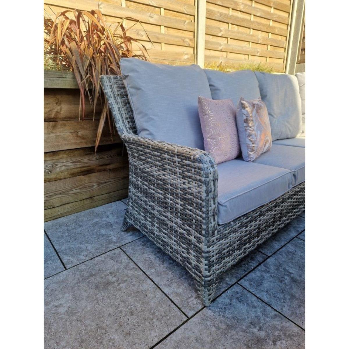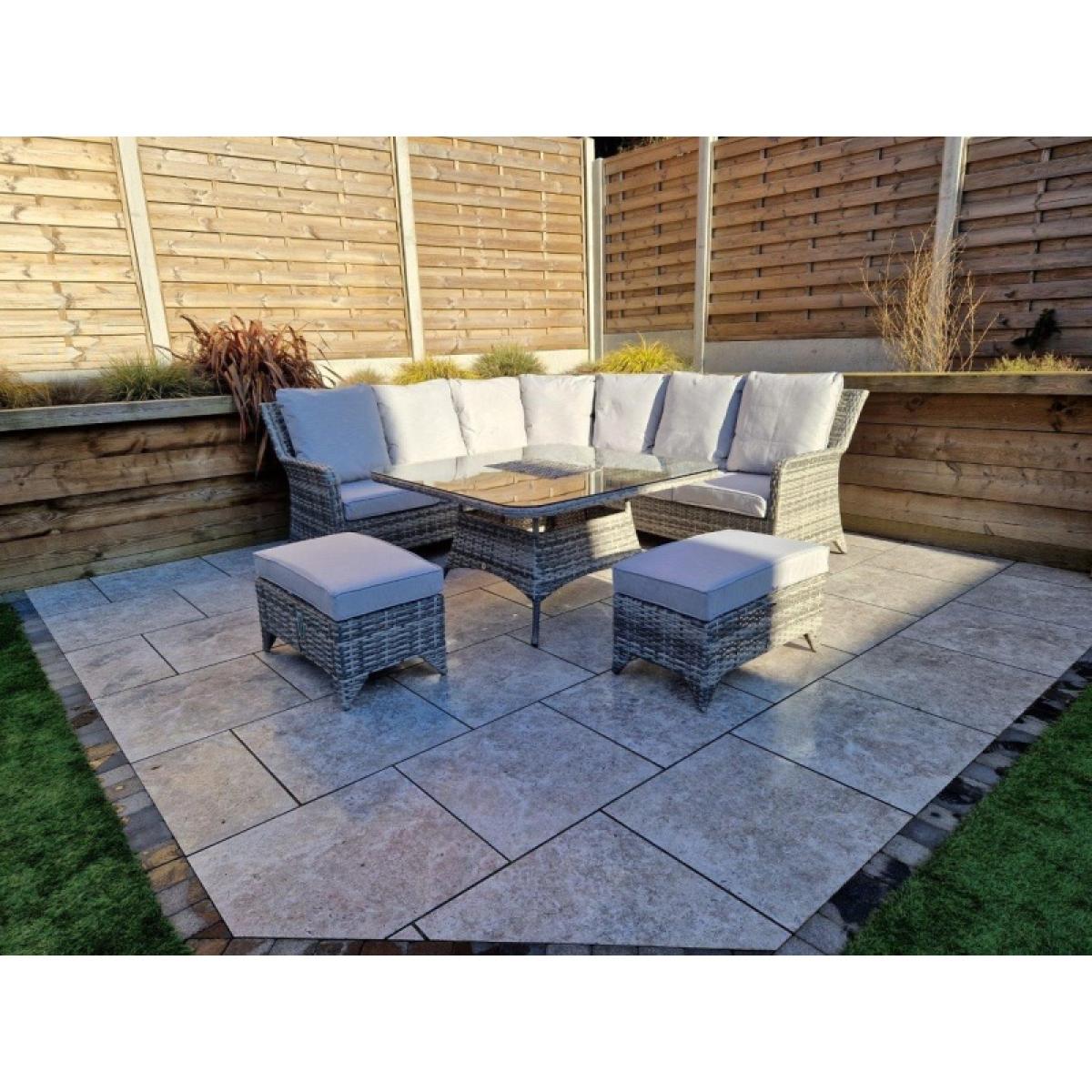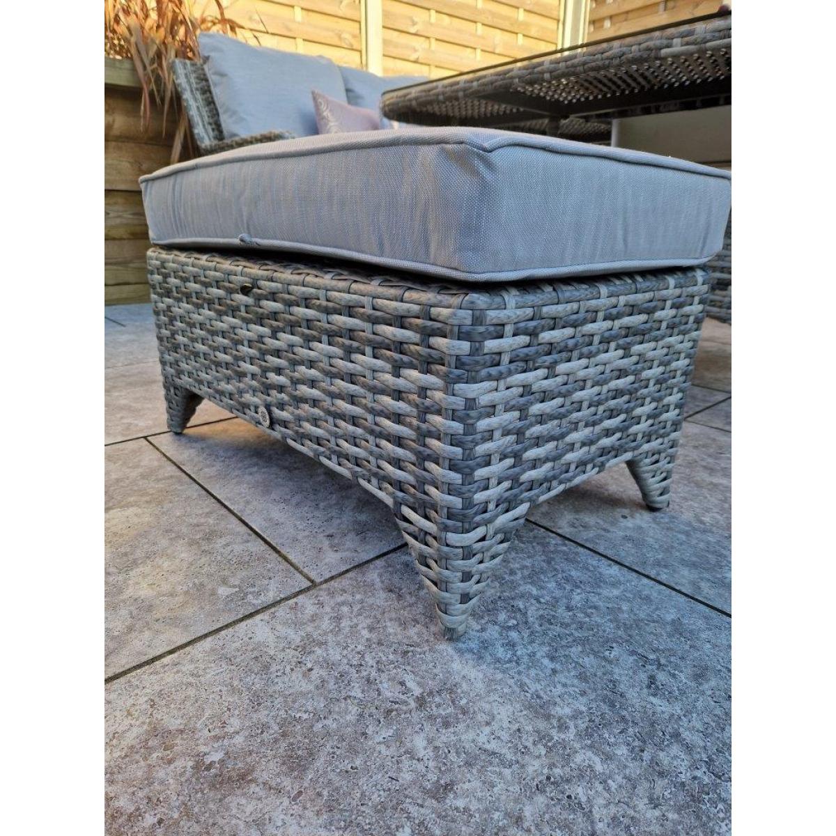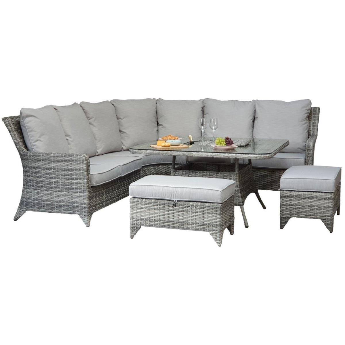 Create a stylish and comfortable outdoor space with the Signature Weave Sarah Corner Set, a stunning and functional addition to any garden or patio. Designed for comfort and durability, this contemporary rattan furniture set features a spacious corner sofa with plush, deep-filled cushions for ultimate relaxation. Crafted from high-quality, weather-resistant rattan in an elegant grey finish, this set is built to withstand the elements while maintaining its sophisticated look. The sturdy tempered glass-topped table provides ample space for drinks and snacks, making it perfect for social gatherings or peaceful outdoor lounging. The built-in ice bucket adds a touch of luxury, keeping your drinks chilled while you entertain guests. Partial assembly is required: simply bolt the legs onto the table on arrival. KEY FEATURES: Set Includes: 1 x Corner Section, 2 x Sofa Sections, 1 x Dining Table with Ice Bucket, 2 x Ottomans Unique High Backed Rattan Corner Sofa Hand crafted in a beautiful chunky grey weave - UV treated and weatherproof Toughened Glass Top Rectangular Table with built-in Ice Bucket Deep Filled Seat, Back & Stool Cushions High quality, soft touch, removable, hand washable light grey/silver cushion covers Perfect for up to 6/7 people to seat comfortably. DIMENSIONS: Corner Sofa: Height: 96cm Width: 260cm Depth: 260cm Seat Depth: 88cm Table: Height: 69cm Width: 129cm Depth: 129cm Stools: Height: 50cm Width: 78cm Depth: 46cm Please note, all screens vary in colour reproduction and whilst every effort has been made to display the colour as accurately as possible it is for guidance only. Scatter cushions and accessories pictured are for demonstration purposes only and are not included.