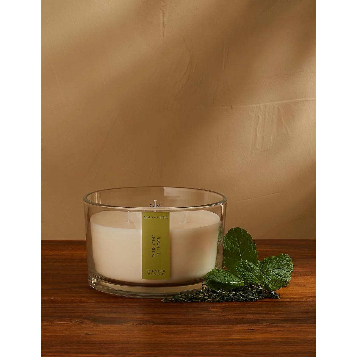 Invigorate your senses with the refreshing aroma of this three-wick candle from our Signature collection. It combines top notes of wild mint, sage and thyme for a harmonious herby fragrance, with hints of eucalyptus providing a calming tone.