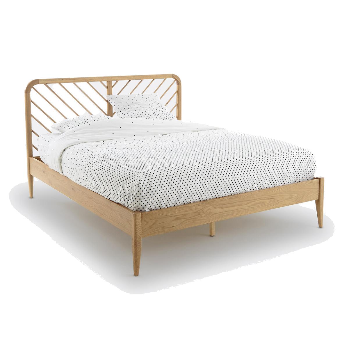 Clean and contemporary. The Anda bed is a La Redoute Intérieurs creation. Product Details • Solid oak, clear nitrocellulose varnish finish • Spindle headboard • Supplied with plywood slatted base • Reinforced legs in solid pineDimensions. Double Size (140 x 190cm) • Width: 147.5cm • Length: 200cm • Height: 110cm • Height of legs : 40cm • Height available under the long side: 23cm • Weight: 44.5kg. King Size (160 x 200cm) • Width: 167.5cm • Length: 210cm • Height: 110cm • Height of legs : 40cm • Height available under the long side: 23cm • Weight: 48kg Super King Size (180 x 200cm) • Width: 187.5cm • Length: 210cm • Height: 110cm • Height of legs : 40cm • Height available under the long side: 23cm • Weight: 50kgDelivery:. Assembly required. Available for home delivery. Note! Please check that all access points are large enough to accommodate your delivery (doors, stairs, lifts). Dimensions and weight of parcel4 parcels. Double size: • 154.5 x 118 x 13cm. 17.5kg. • 154.5 x 48 x 13cm. 8.5kg. • 206 x 21 x 15cm. 21.5kg. • 142 x 24.5 x 9cm. 11.5kg. King size : • 174.5 x 118 x 13cm. 19.4kg. • 174.5 x 48 x 13cm. 10kg. • 206 x 21 x 15cm. 21.5kg. • 162 x 24.5 x 9cm. 12.4kg. Super King size: • 195 x 118.5 x 13cm. 20.5kg. • 195 x 49 x 13cm. 10kg. • 206 x 21 x 15cm. 16kg. • 182 x 24.5 x 9cm. 16kg.