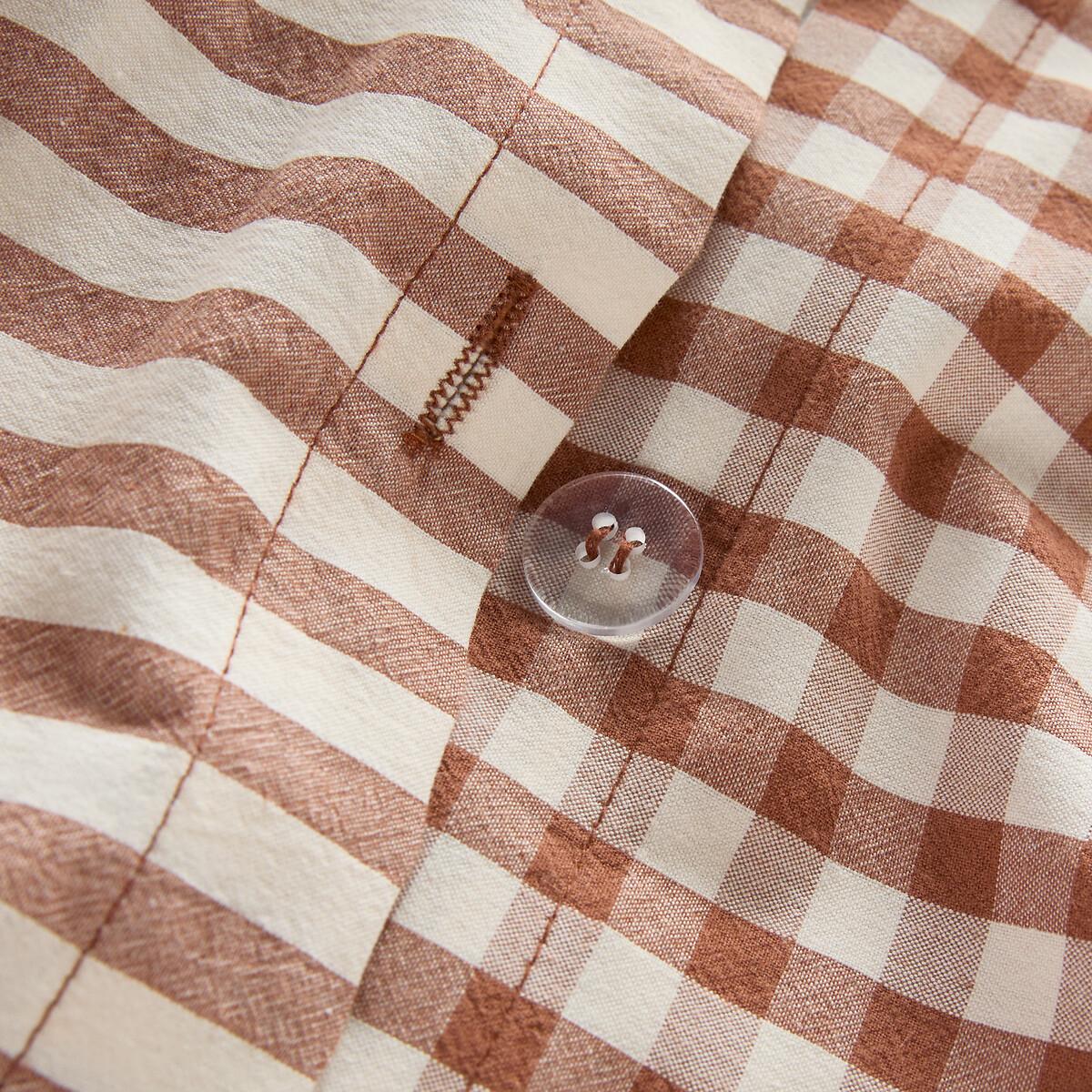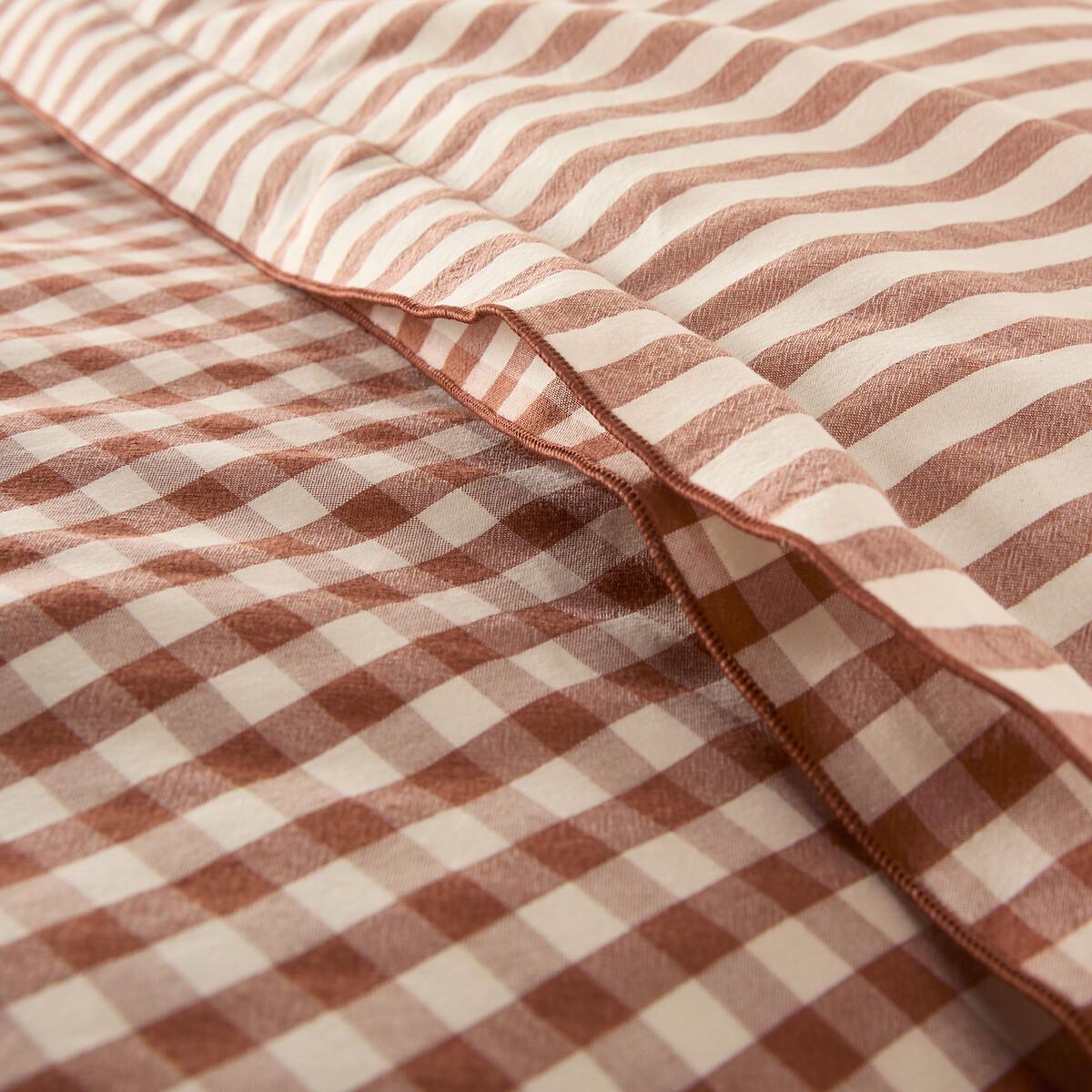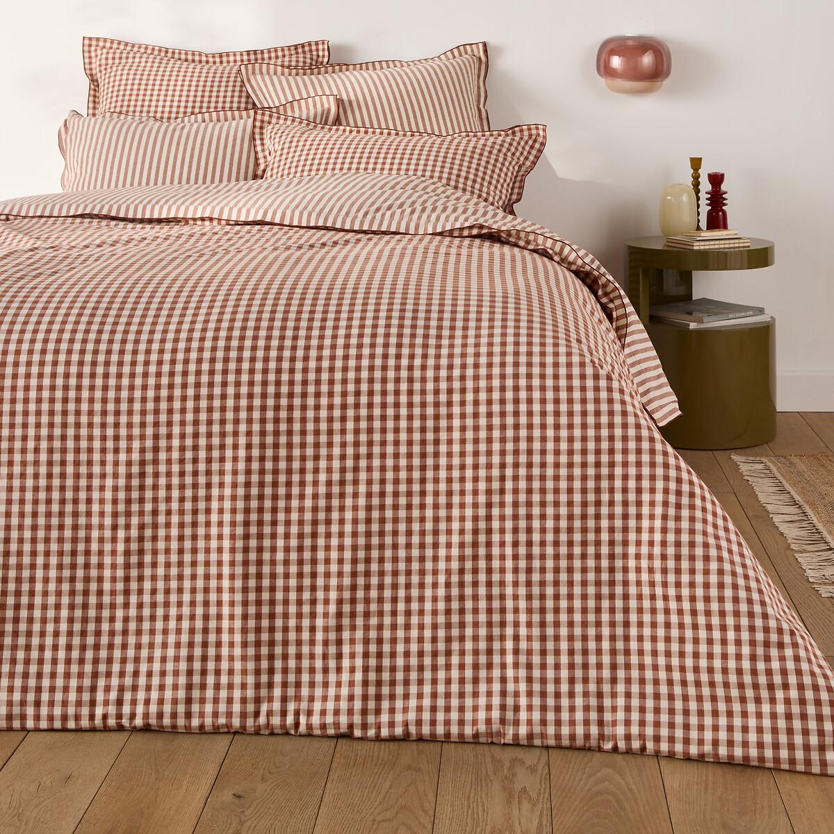 A set of checks and stripes in washed cotton, lightly embossed using the seersucker technique. Cottage bed linen evokes a timeless, simple style. Designed by La Redoute Interiors. Always on trend, it's easy to see why Signatures are often customer favourites. Will they be yours. An internal design by Isabelle Olejniczak : “By creating Cottage, I wanted to evoke the warm and rustic world of the English countryside. The embossed appearance of seersucker, gingham on one side and striped on the other, gives it an arstisanal spirit. It is highlighted with a tone-on-tone feature on the double ruffle. "The washed cotton has been delicately bleached during its manufacture. Soft, supple and comfortable, it softens over time. Its slightly wrinkled appearance is incredibly on-trend, and it does not require ironing. Product Details • 100% cotton • Seersucker dyed woven washed cotton • Caramel colour • Available in other colours • 144 thread count • One side check, one side stripes • Double ruffle finish • Straight buttoned hem Match this item with the rest of the bedding in the range for a stylish bedroom. And you can mix and match it with different colours and styles from our other bedding ranges when you want to change things up and create your own unique look. Care Advice • Machine washable at 60°C • By washing your laundry at 40°C instead of 60°C, you limit energy consumption. Dimensions • 140 x 200cm: Single • 200 x 200cm: Double • 240 x 220cm: Super King • 260 x 240cm: King • OEKO-TEX® Standard 100. Standard 100 certification by OEKO-TEX® tests textile products for harmful substances via an independent, international label.