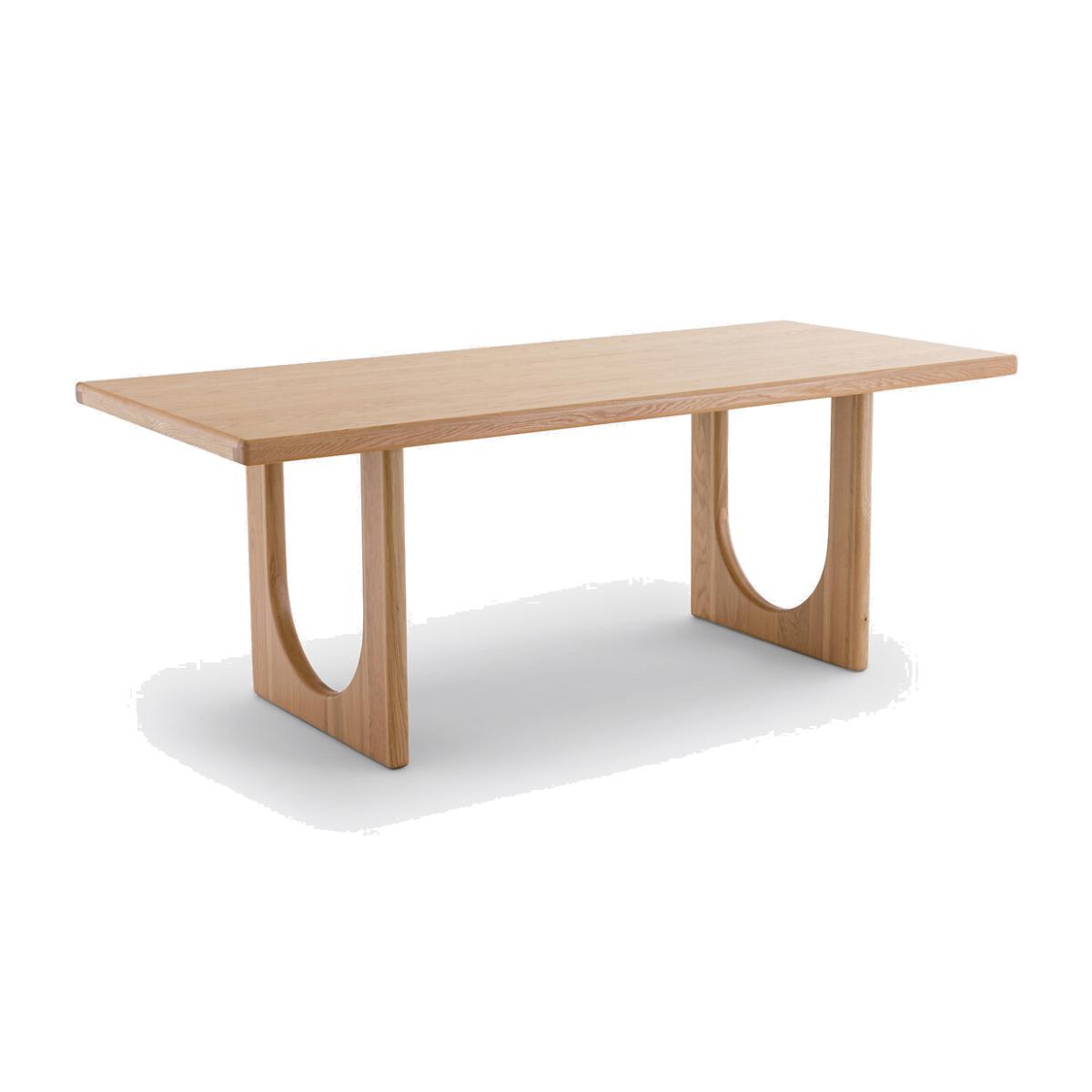 The Douve Table is part of the La Redoute Signatures Collection. A selection of exclusive creations, designed by our in-house design studio. Inspiring, easy to live with, trendy... these products have become our customers' favourites. and no doubt yours!.An internal design by Adrien Edel :"By creating Douve, I wanted to reinterpret the traditional abbey table. It stands out for its contemporary style, its Nordic spirit and its sculptural design.. FSC® certified solid oak, thick top with rounded edges and inverted arch base: all the beauty of carpentry. "Product Details • Base and top frame in solid oak, top in oak veneered particle board, FSC® certified wood • Top thickness 5cm • Polyurethane varnish finish • Seats 6-8 peopleDimensions. Overall • Width: 200cm • Height: 75cm • Depth: 90cm. Usable space • Length between legs: 120cmDelivery:. Assembly required. Available for home delivery. • WOOD FROM SUSTAINABLY MANAGED FORESTS. FSC® certified wood comes from forests that are environmentally, socially and economically well managed. Dimensions and weight of parcel2 parcels • L210 x H9 x D100cm. 34kg • L86 x H24.5 x D86cm. 25kg