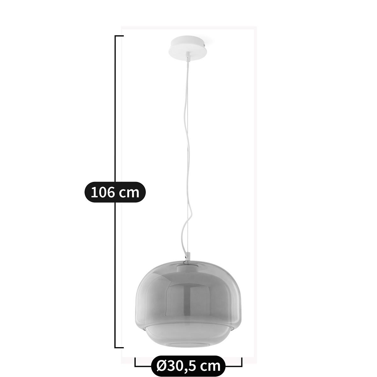 The Kinoko glass lampshade. This double coloured glass lampshade has a retro feel and will flood your home with a gentle light. Product Details • Pendant lamp with double shade in coloured glass • Steel structure covered with epoxy paint • Support for E27 socket for LED bulb of 9W max (not supplied) • Each piece is unique, the glass is hand blown and may vary slightly from one product to another. Dimensions • Diameter 30.5cm • Height: 106cm. Dimensions and weight of parcel1 parcel • 55 x 39 x 39cm • 3.3kg