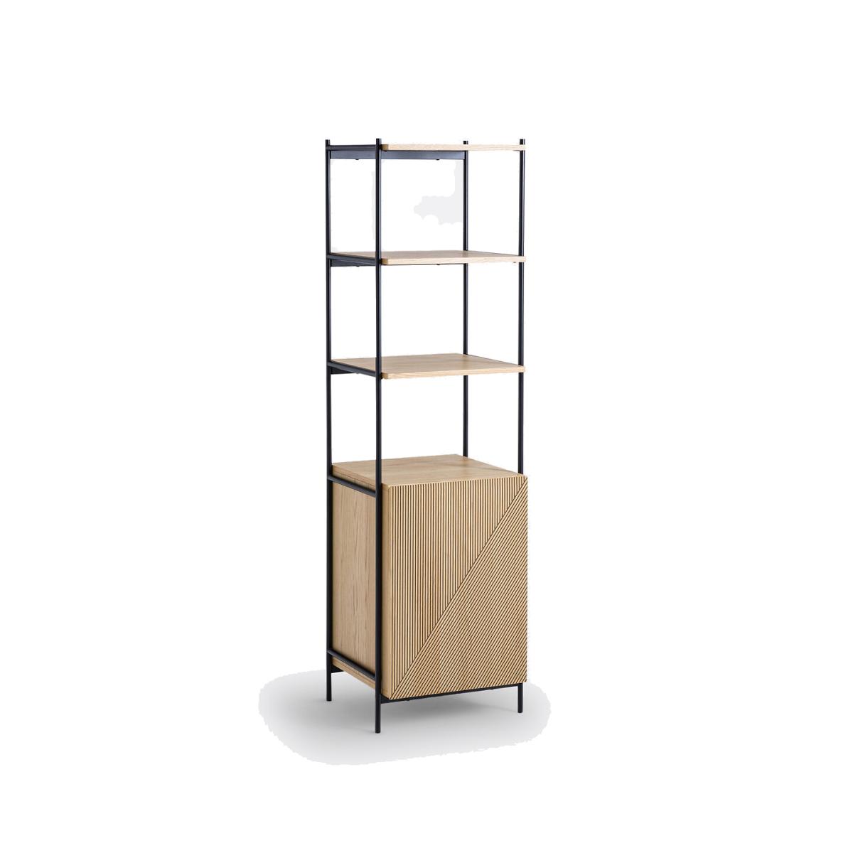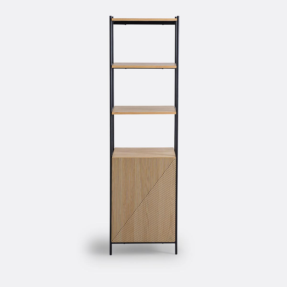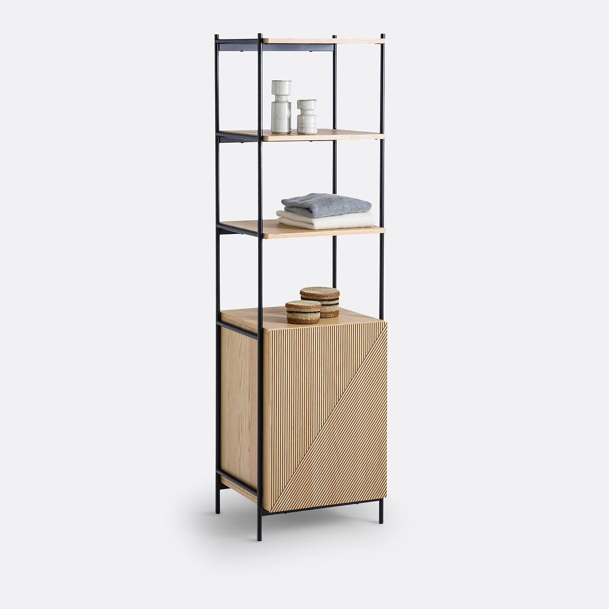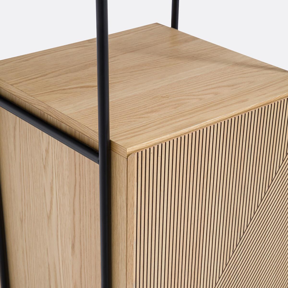 The Lodge Wardrove Module is part of the La Redoute Signatures Collection. A selection of exclusive creations, designed by our in-house design studio. Inspiring, easy to live with, trendy... these products have become our customers' favourites. and no doubt yours!. Designed internally by Aurore Delest : "To create the Lodge dressing module, I wanted to combine vintage with ethnic influences, notably with carved wood. The streaky wire drawing brings rhythm for a graphic spirit and a contemporary style. "The different dressing modules in the Lodge range allow you to easily put together your dressing room. Product Details • 3 open fixed shelves • 1 door with 1 shelf adjustable in height in 3 positions • Structure in black metal tubes with epoxy finish, matte effect • Unit and shelves in oak veneered MDF with nitrocellulose varnish finish • FSC certified woodDimensions. Overall • Width: 54.2cm • Height: 190.7cm • Depth: 52cm. Usable space • Height between shelves: 34cm • Height of legs: 12cm • Weight: 40.2kg Delivery:Assembly required. Available for home delivery. Note! Please check that all access points are large enough to accommodate your delivery (doors, stairs, lifts). • WOOD FROM SUSTAINABLY MANAGED FORESTS. FSC® certified wood comes from forests that are environmentally, socially and economically well managed. Dimensions and weight of parcel2 parcels • L198 x H19.5 x D50.5cm. 11.94kg • L78.5 x H24.5 x D60cm. 35.86kg