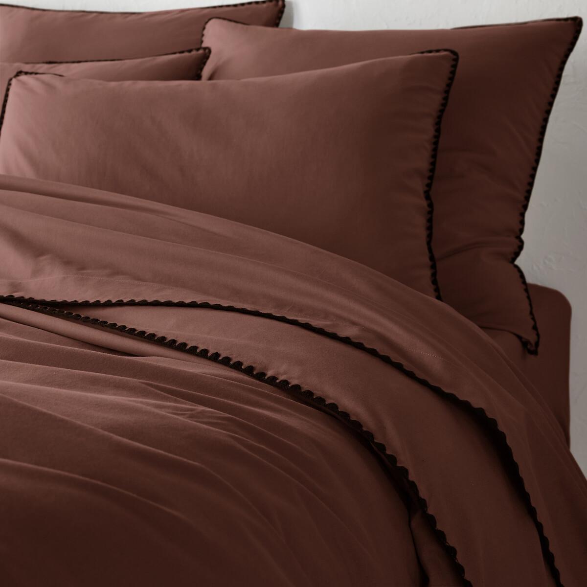 The Merida bedding range is part of the La Redoute Signatures Collection. A selection of exclusive creations, designed by our in-house design studio. Inspiring, easy to live with, trendy... these products have become our customers' favourites. and no doubt yours!.An internal design by Isabelle Olejniczak :“To create Mérida bed linen, I wanted to offer warm tones, softened by the weathered appearance of washed cotton, for a nomadic spirit. Made in an artisanal fashion, its black cotton embroidery brings extra soul to this graphic and timeless bed linen.."The washed cotton has been delicately bleached during its manufacture. Soft, supple and comfortable, it softens over time. Its slightly wrinkled appearance is incredibly on-trend, and it does not require ironing. Product Details • 100% cotton • 144 thread count • Plain single colour both sides • Contrasting black embroidery edging • Straight buttoned hem Care Advice • Machine washable at 60°C • By washing your laundry at 40°C instead of 60°C, you limit energy consumption. Sizes • 140 x 200cm: Single • 200 x 200cm: Double • 240 x 220cm: King • 260 x 240cm: Super King. Over the seasons, add your personal touch by mixing the Merida range with our Scenario range of plain washed cotton bedding! • OEKO-TEX® Standard 100. Standard 100 certification by OEKO-TEX® tests textile products for harmful substances via an independent, international label.