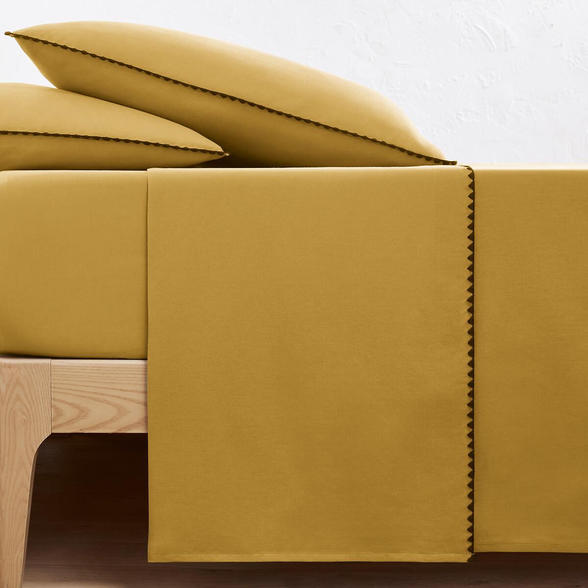 The Merida bedding range is part of the La Redoute Signatures Collection. A selection of exclusive creations, designed by our in-house design studio. Inspiring, easy to live with, trendy... these products have become our customers' favourites. and no doubt yours!.An internal design by Isabelle Olejniczak :“To create Mérida bed linen, I wanted to offer warm tones, softened by the weathered appearance of washed cotton, for a nomadic spirit. Made in an artisanal fashion, its black cotton embroidery brings extra soul to this graphic and timeless bed linen.."The washed cotton has been delicately bleached during its manufacture. Soft, supple and comfortable, it softens over time. Its slightly wrinkled appearance is incredibly on-trend, and it does not require ironing. Product Details • 100% cotton • Washed cotton • 144 thread count • Contrasting black embroidery edging. Care Advice • Machine washable at 60°C • By washing your laundry at 40°C instead of 60°C, you limit energy consumption. Sizes • 180 x 290cm: Single • 240 x 290cm: Double • 270 x 290cm: King. Over the seasons, add your personal touch by mixing the Merida range with our Scenario range of plain washed cotton bedding! • OEKO-TEX® Standard 100. Standard 100 certification by OEKO-TEX® tests textile products for harmful substances via an independent, international label.