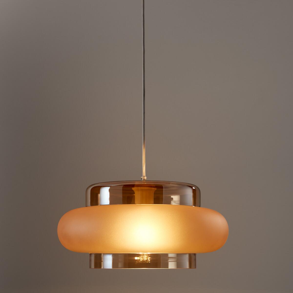 With its amber coloured glass and frosted glass lampshade, the Triana pendant light offers a unique design for your home. Created by La Redoute Interiors. Product Details • Ceiling light mixing coloured glass and frosted glass • E27 socket for LED bulb of 8W max (not included)Dimensions • Diameter: 40cm • Height: 100cm • Lampshade:Diameter 40 x H19cm Parcel dimensions and weight • 1 parcel • L47.5 x H47 x D27cm. 3.4kg.