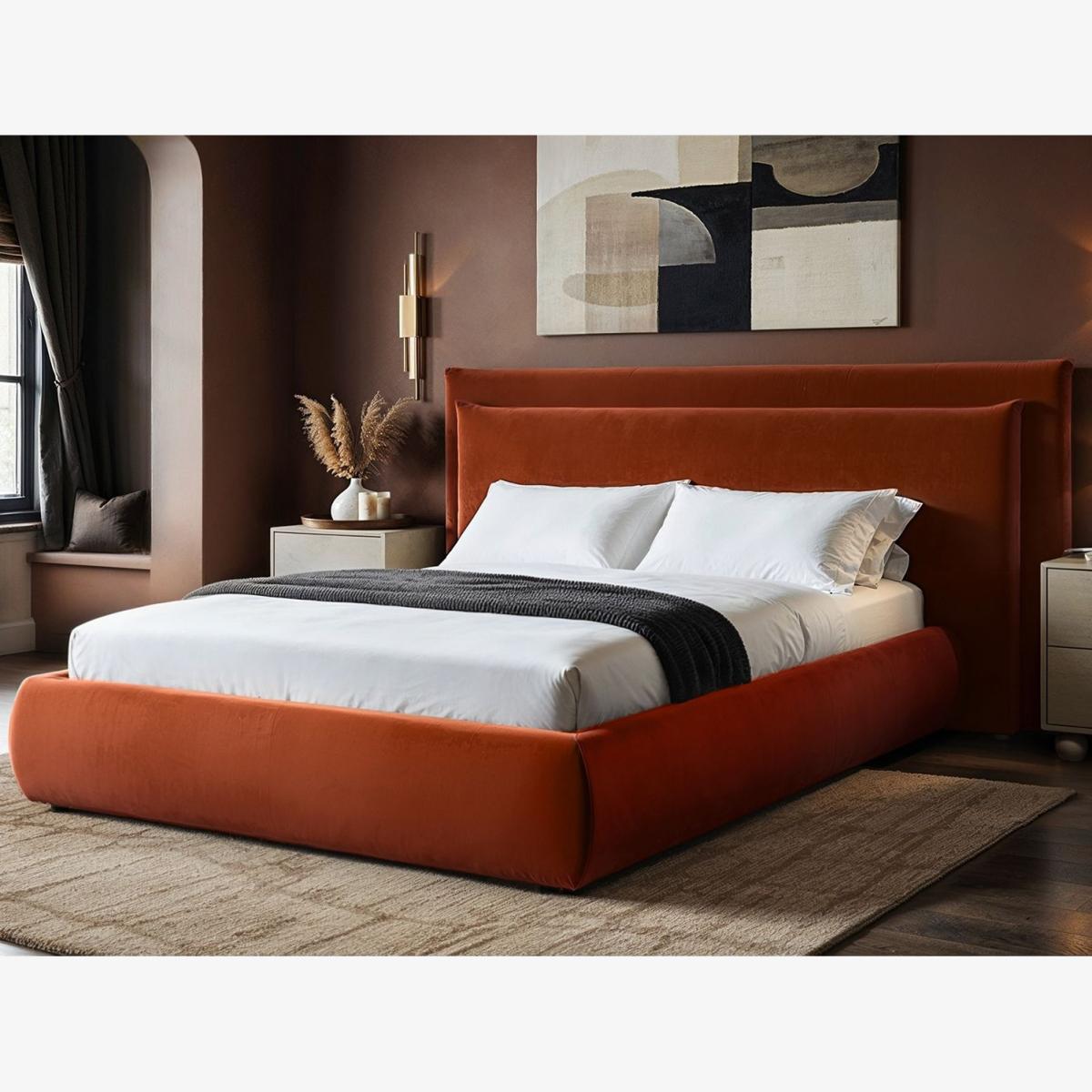 Sigrid Burnt Orange Velvet Cushion Headboard Ottoman Bed - Burnt Orange