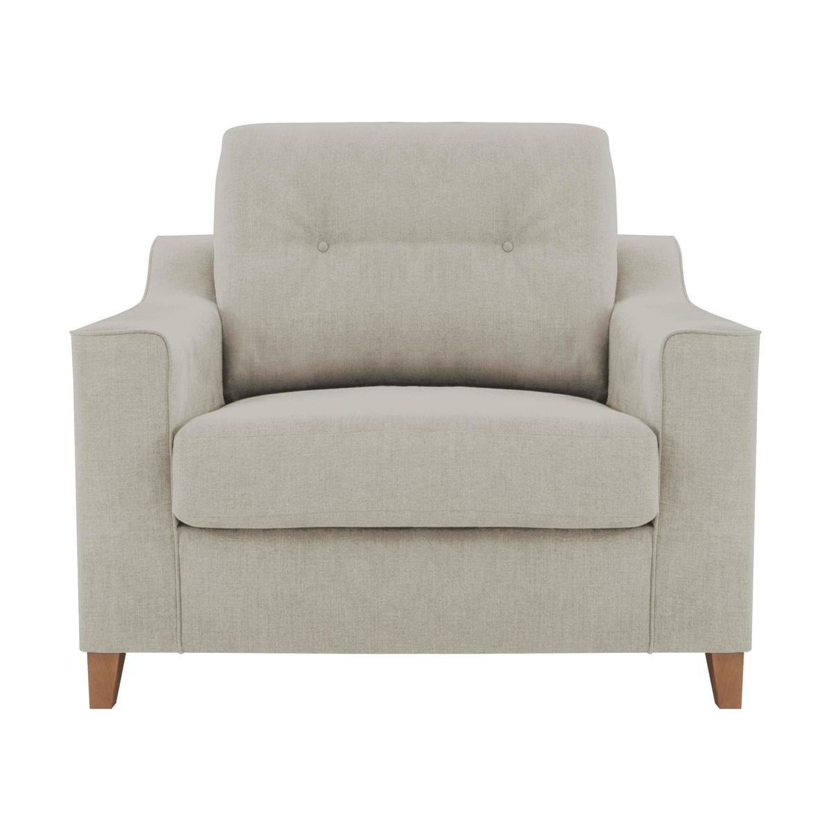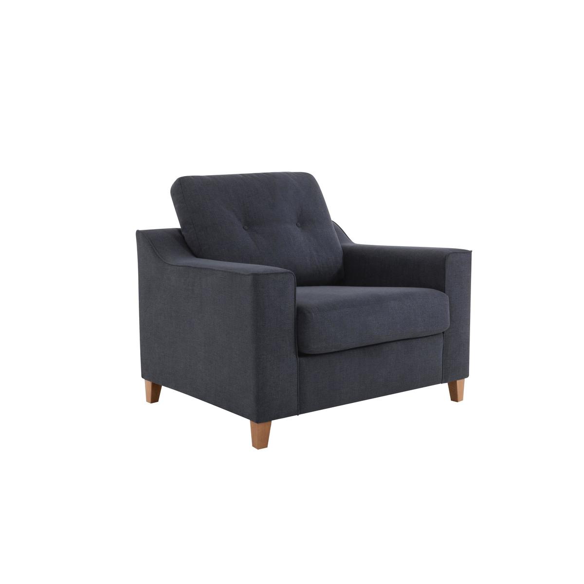 The Sigrid snuggler armchair is roomy, relaxed and contemporary. We love its outwardly angled arms and deep, buttoned back cushion. This large armchair complements the Sigrid sofas and chairs, but also stands alone as a distinctive and stylish statement piece. The upholstery is a soft flat weave fabric in a choice of beautiful colours, call 0800 804 8879 for more choices. This small, beautifully British made cuddle chair or love seat is luxuriously comfortable, perfect for one to stretch out on or two to cuddle up on. It pampers you with a sprung seat and back and a foam with a luxury fibre topping seat cushion. Add to the fresh style with scatter cushions in a choice of accent patterns and colours, available to buy separately. The modern, solid hardwood feet come in a light or dark finish. The Sigrid snuggler armchair is exclusive to Furniture Village. It’s part of the versatile Sigrid range, which includes sofa beds with memory foam mattresses.