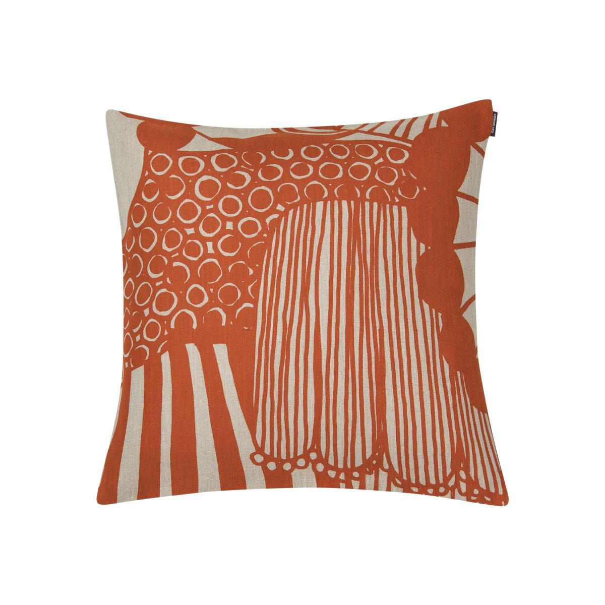 This cushion cover is decorated with the orange Siirtolapuutarha motif, printed on a linen fabric with a natural colour. The cushion cover has a hidden zip fastening on one side. This wonderful pattern is from the young Finish illustrator, Maija Louekari. Siirtolapuutarha (town garden) is a design with a brilliant trait which retraces a journey, from a lively town centre to a vegetable garden overflowing with flowers and vegetables. Chic and graphic, Marimekko's textile collection brings new life to your home! Created in 1951, Marimekko is a state of mind, a way of life based on creativity, freedom of spirit and inventiveness. Its fame dates back to 1960, when Jackie Kennedy made several public appearances in Marimekko dresses. From that moment, the brand was immensely successful, and still is, with a range of clothing and decorative accessories in bright colours, for an inspired house! PLEASE NOTE: Cushion cover sold on its own.