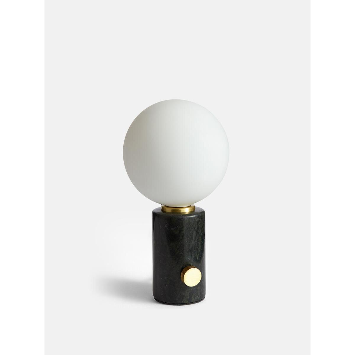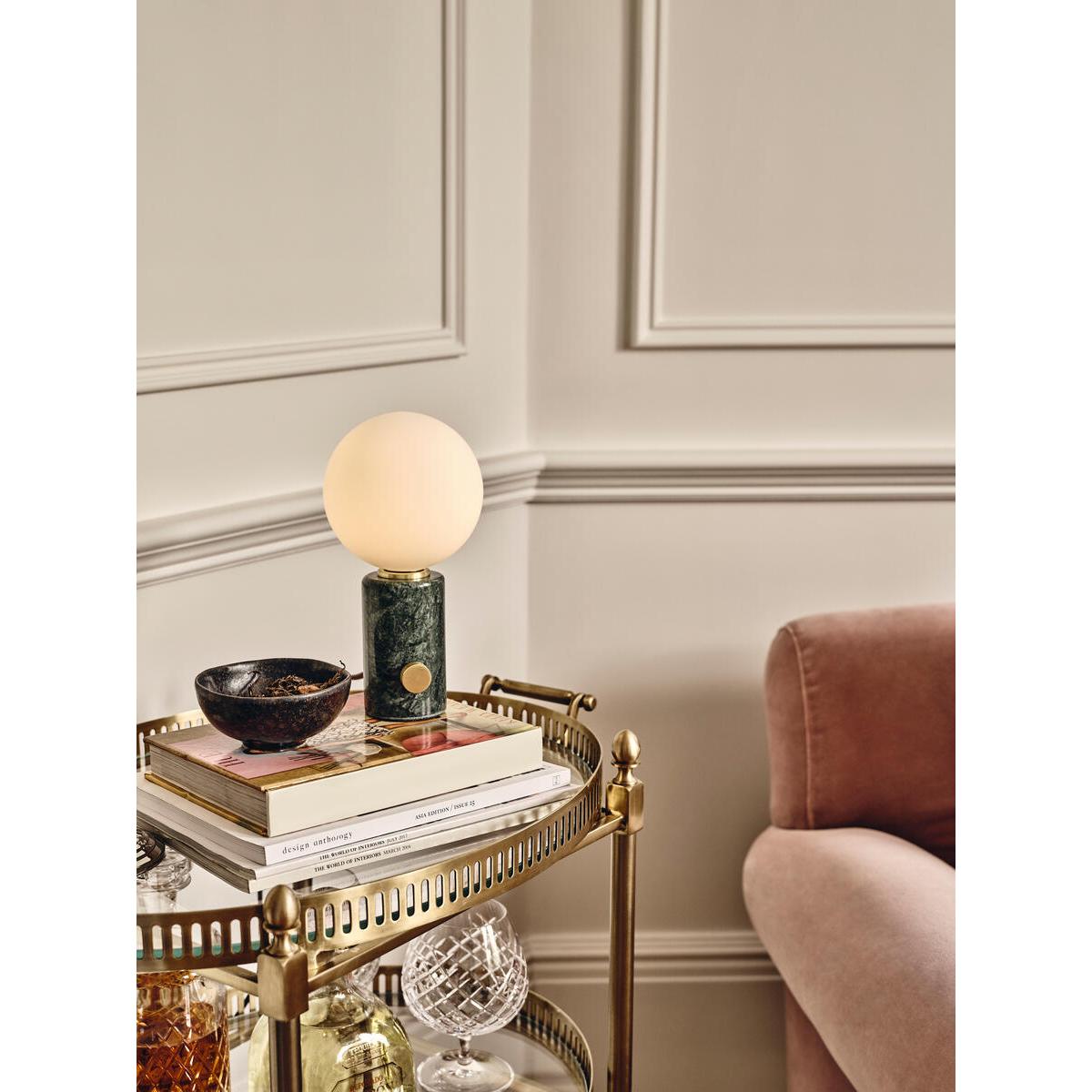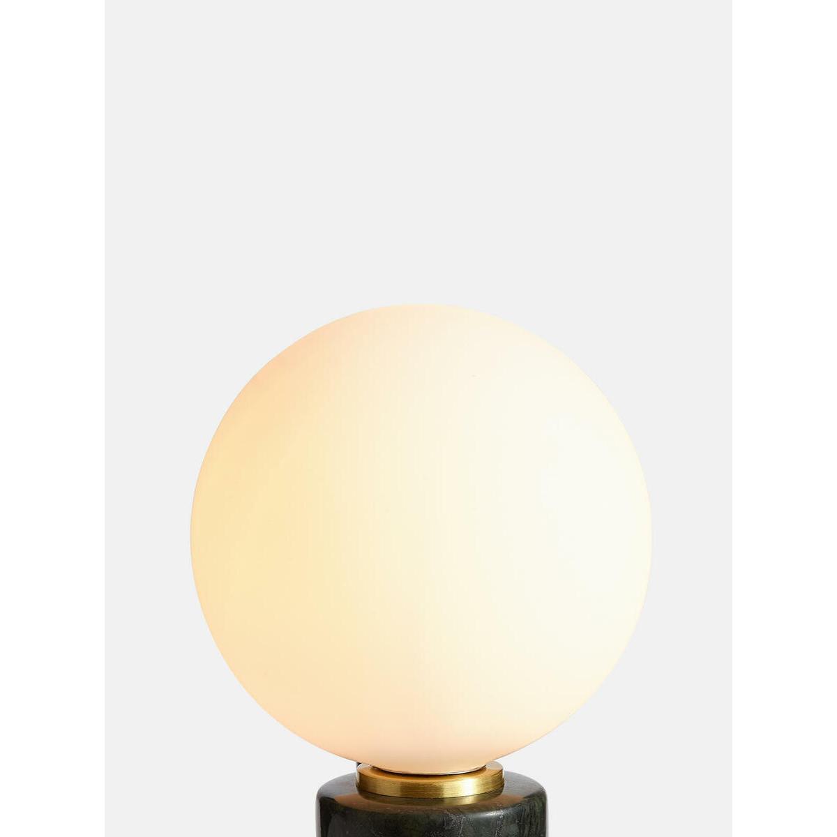 Inspired by vintage Murano glass designs from the 1960s and themid-century lighting at White City House, this lamp is topped witha white glass orb. The solid marble base is minimally detailed withan antique brass finish dimmer switch, so you can create a warmlight or soft glow to suit your mood. Table lamp with marble base. White glass orb shade. Natural variations in stone make each lamp unique. Antique brass finish rotating dimmer switch. 1 / G9 / 28W MAXIMUM. Inspired by White City House.