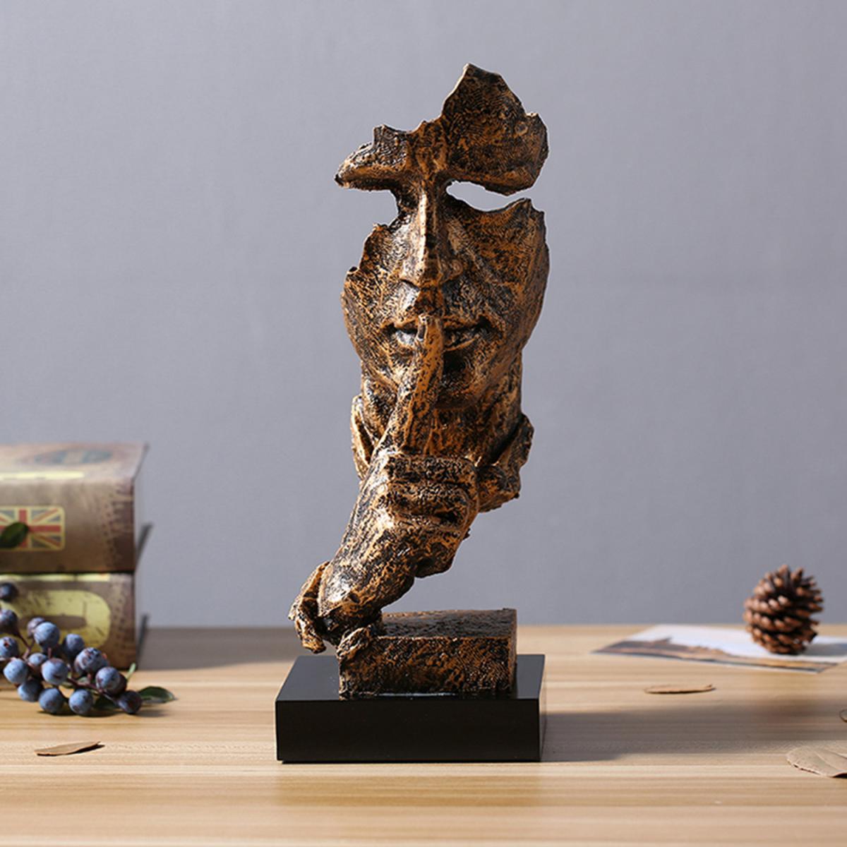 Silence Face Figurine Sculpture - Bronze