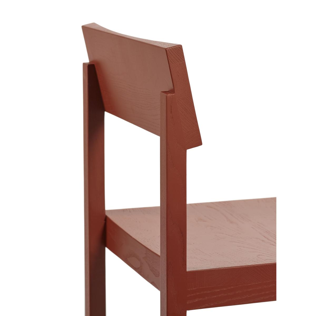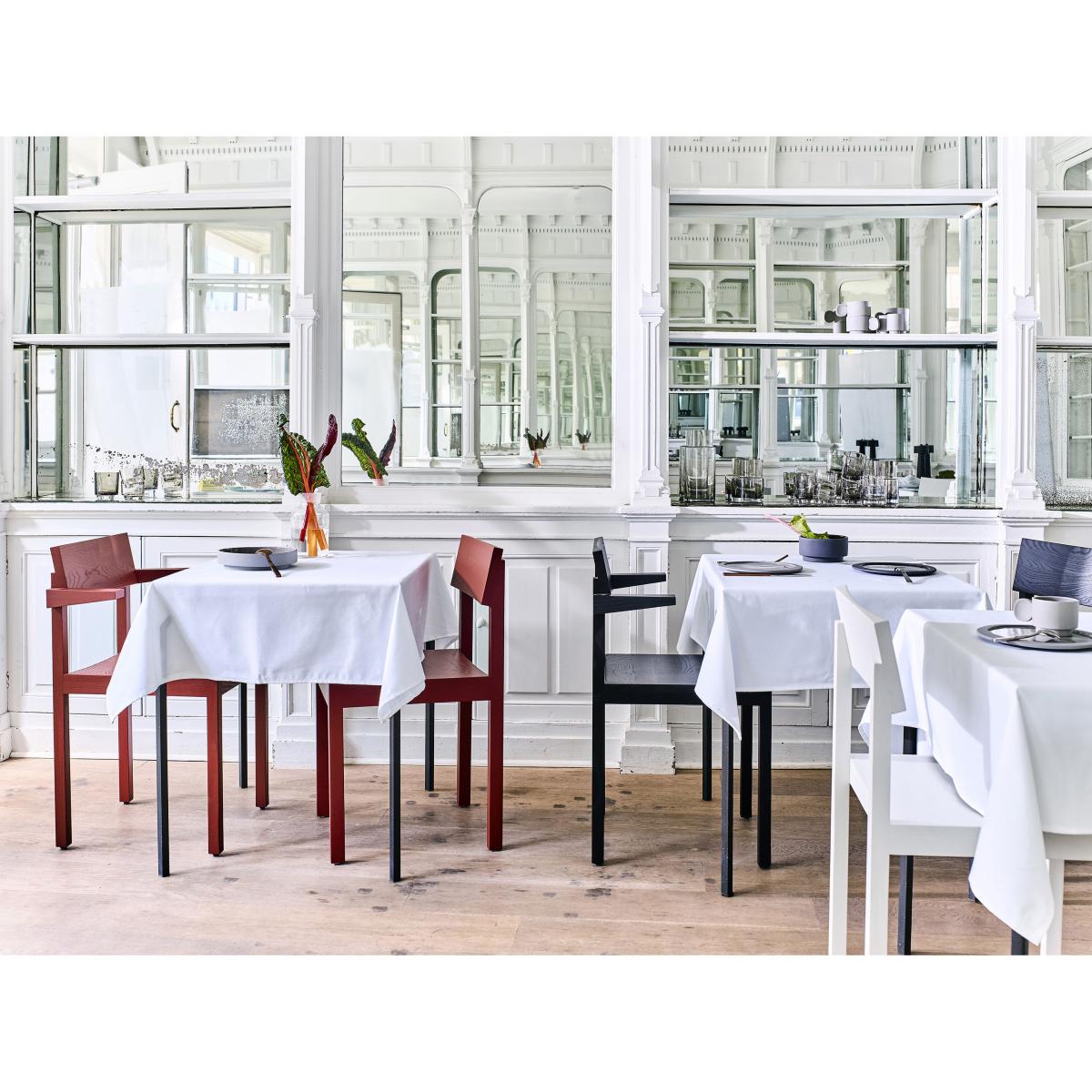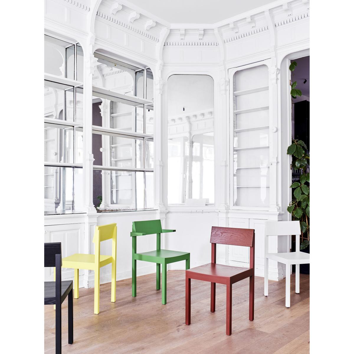 A blooming and ultra-productive trio, the designers from the high-end Lausanne studio have been colouring our daily lives with optimism for over a decade, through their joyful objects with sleek lines. Simplicity, functionality and optimist are the key features of all of their creations. For their collaboration with the Belgian creative house, the big-game designers set out with the following idea: "There is already so much noise and information in this world, we need silent objects. " Driven by rationale and the formal simplicity of the Swiss culture, the Silent chair is a tool-piece, an object embodying purity. Its perfectly functional look and strictly formal humbleness create an impression of aesthetic neutrality, which continues to withstand the tests of time. The design of Silent is a potential equivalent for modernist Swiss fonts. In the Silence chair, everything is minimised: each screw or technical element has been meticulously concealed to create an eye line which is as clear as possible, creating a calm visual. To design Silent, the designers found inspiration in an archetypal church chair: an extremely straight-up design in robust ash wood, with few diagonals. In other terms, a "completely silent" chair. To provide modern comfort, slight curves are worked into the backrest and seat of the chair. Evoking an instant sense of familiarity, the archetypal shape has been subtly modernised by comfortable curves and a fresh, inviting colour palette. The Silent chair plays the modern minimalism card, yet with an explosion of colour. The armchair version has particularly short armrests which are forward-pointing.