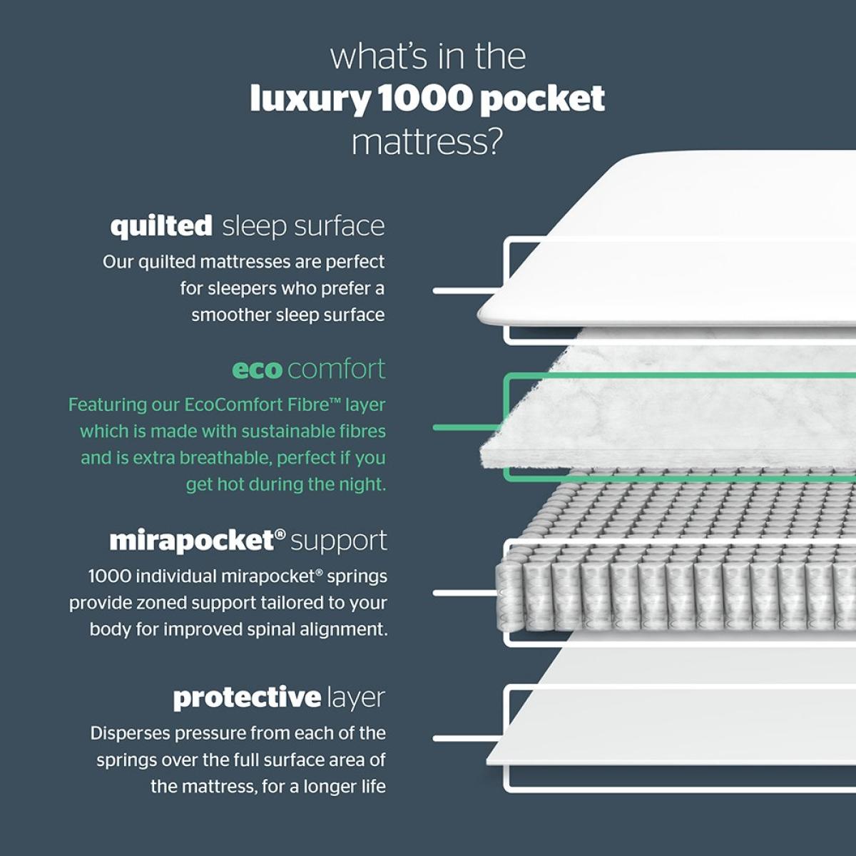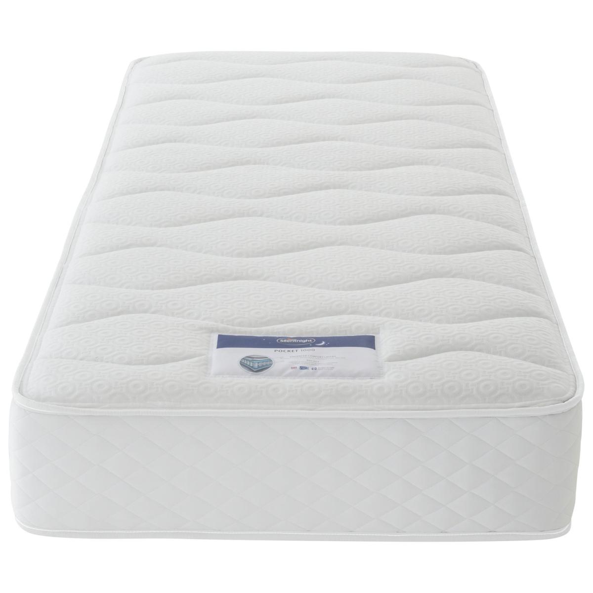 This 1000 Pocket Luxury mattress from Silentnight offers superb tailored comfort, as the individual springs spread your weight evenly across the mattress for perfect support where you need it most, while deep foam fillings offer additional cushioning and comfort. With 1000 springs under tension in their own fabric pockets and zoning across the mattress to provide edge to edge responsive support, scientifically proven to provide superior spinal alignment and body support. This mattress is finished in a luxury soft knit cover for a smooth sleep surface and provides a medium comfort, great for most sleeper types. It's also hypoallergenic and provides pressure relief to help ease aches and pains through the night. At Argos Home we want you to get the best night's sleep possible, so we offer a 100 night comfort promise on our mattresses. Try your new mattress for up to 100 nights and if you aren't sleeping soundly, we'll offer you an exchange for one that suits you better. Part of the Premium Pocket collection. Medium feel. Pocket sprung mattress with 1000 springs. Knit cover with quilted finish. No roll together. Anti allergy. Mattress size W90, L190, D25.5cm. No-turn mattress. Rotate mattress regularly. Made in the UK. General information: Manufacturer's 5 year guarantee.