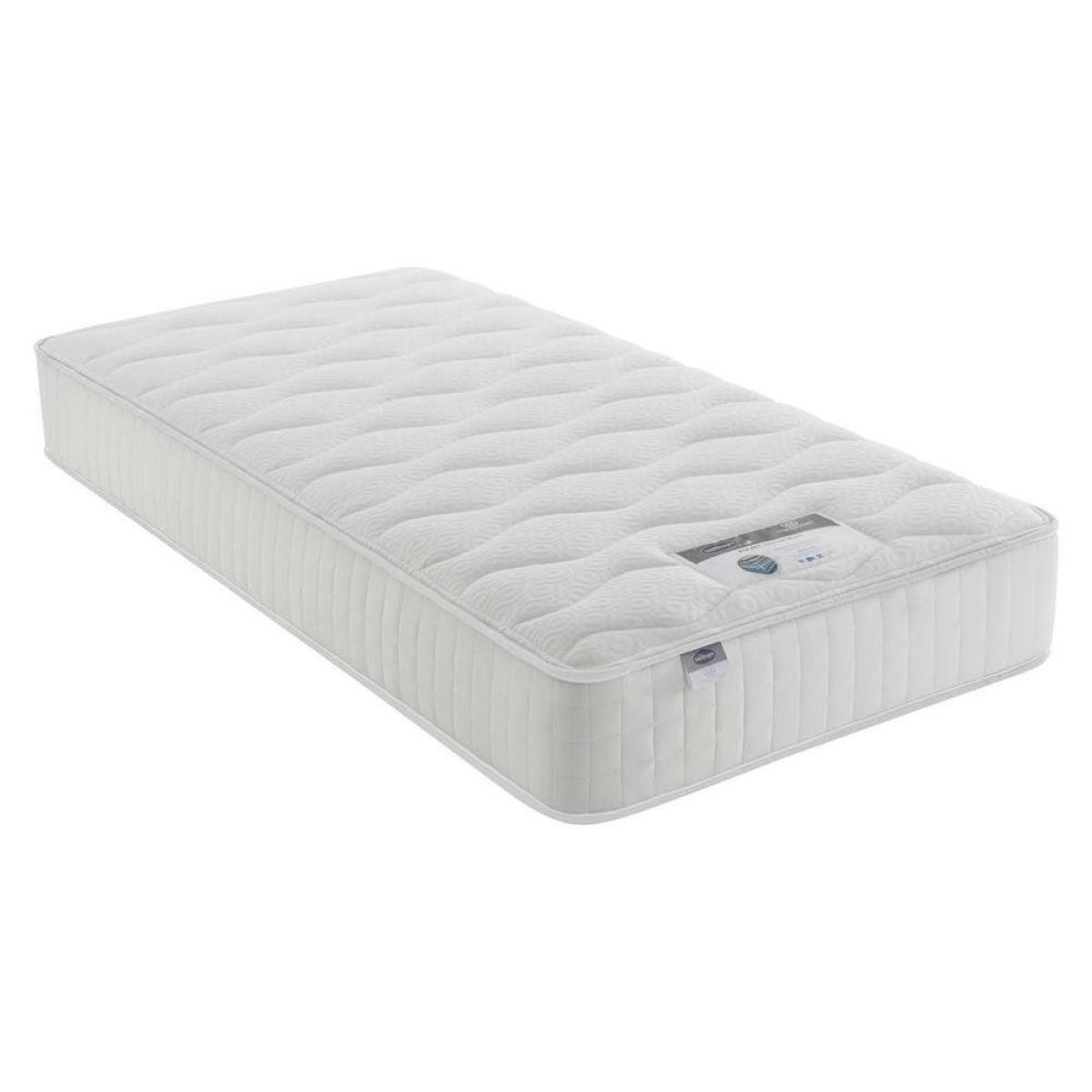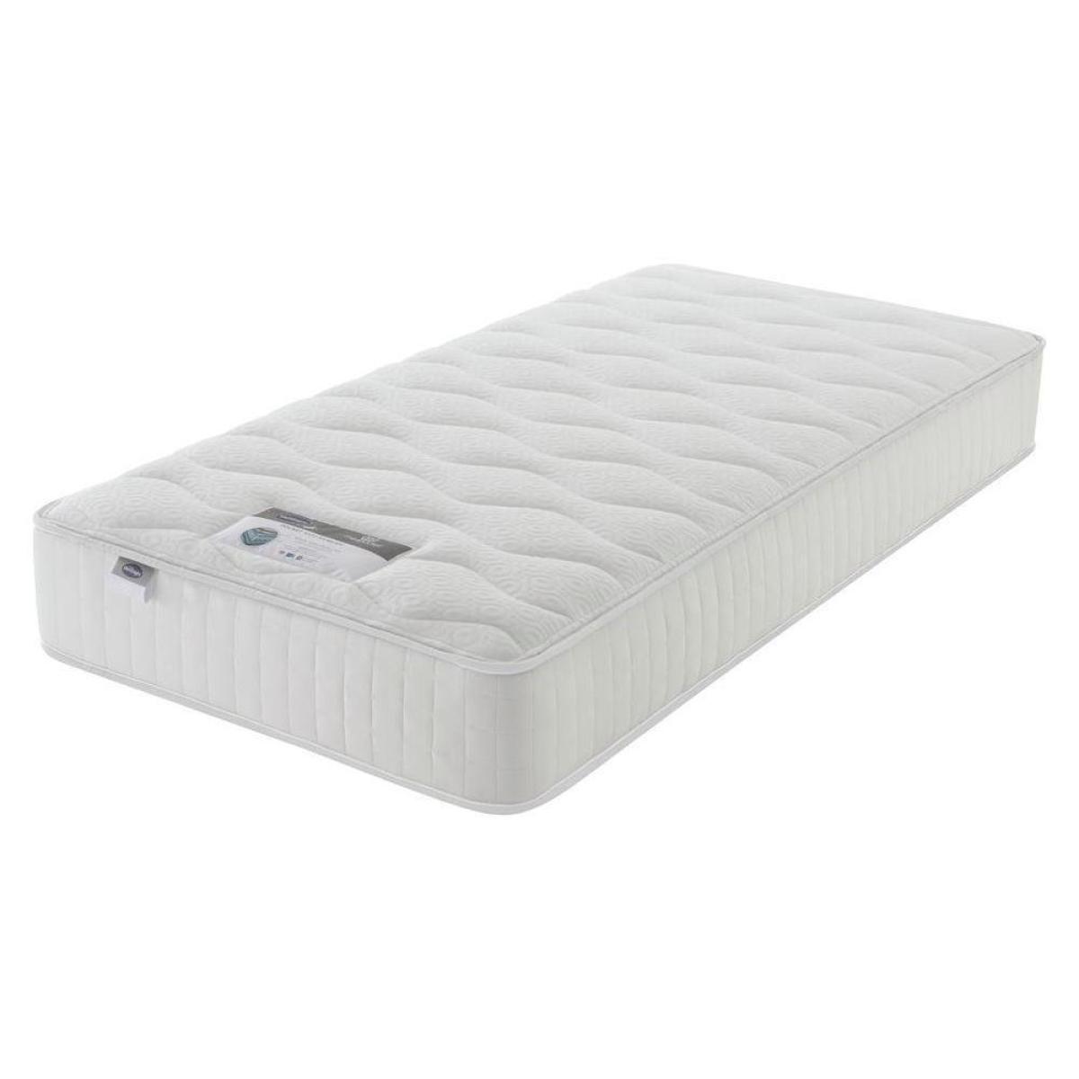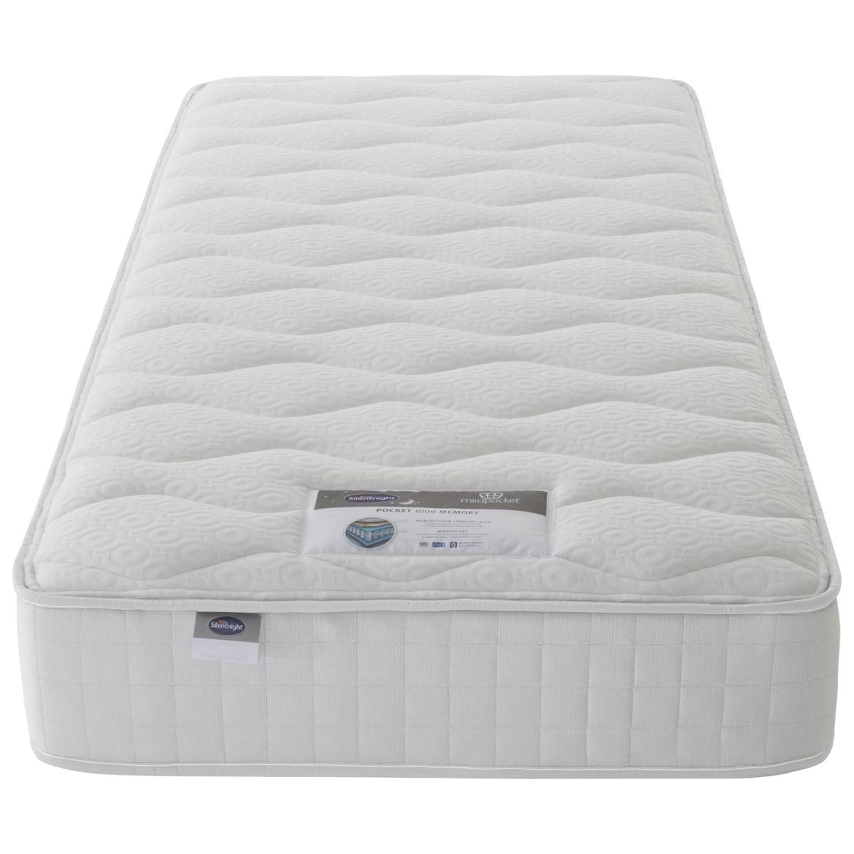 Part of the Premium Pocket Collection, this 1000 Pocket Memory mattress from Silentnight offers tailored comfort, as the individual springs spread your weight evenly across the mattress for perfect support where you need it most, while a layer of memory foam moulds to your body to provide pressure relief and offer soothing comfort. With 1000 springs under tension in their own fabric pockets and zoning across the mattress it provides edge to edge responsive support, scientifically proven to provide superior spinal alignment and body support. The memory foam in this mattress allows you to gently sink into blissful slumber and no roll together means you won't disturb yours or your partners sleep when moving around in the night. This mattress is hypoallergenic, for healthier sleep. With its medium comfort rating, it's suitable for most sleeper types as it offers a happy balance of soft and firm. At Argos Home we want you to get the best night's sleep possible, so we offer a 100 night comfort promise on our mattresses. Try your new mattress for up to 100 nights and if you aren't sleeping soundly, we'll offer you an exchange for one that suits you better. Part of the Premium Pocket collection. Medium feel. Pocket sprung with memory foam layer mattress with 1000 springs. Knit cover with micro quilt finish. No roll together. Anti allergy. Mattress size W90, L190, D26cm. No-turn mattress. Rotate mattress regularly. Made in the UK. General information: Manufacturer's 5 year guarantee.