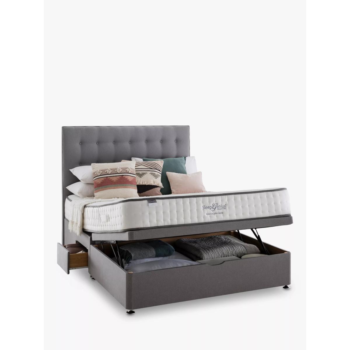Made in the UK Practical and stylish, this divan base offers the ultimate storage solution, helping you to maximise your bedroom even if space is limited. With front half ottoman storage and 2 continental half drawers, this bed will give you plenty of flexible space to keep possessions neat and organised. Have you thought about a new mattress? Shop. Please note: not all our ranges are on display in our shops.