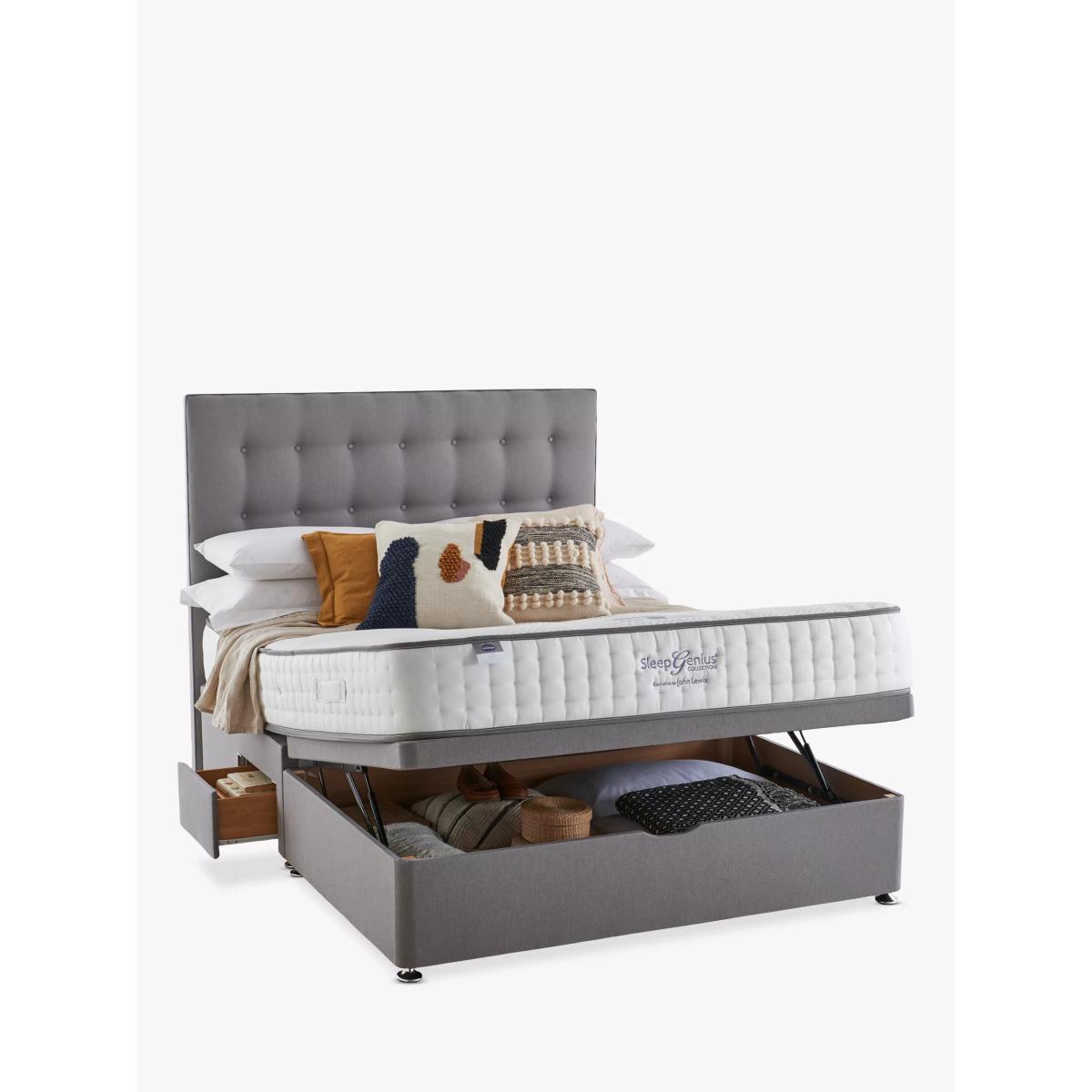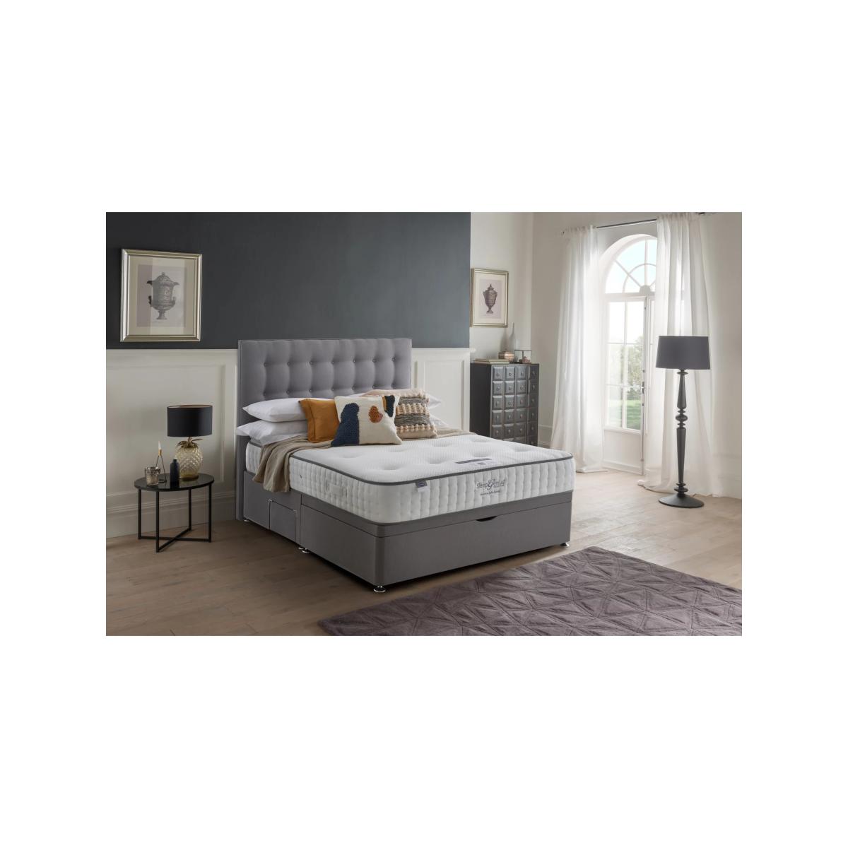 Practical and stylish, this divan base offers the ultimate storage solution, helping you to maximise your bedroom even if space is limited. With front half ottoman storage and 2 continental half drawers, this bed will give you plenty of flexible space to keep possessions neat and organised. Have you thought about a new mattress? Shop here. Please note: not all our ranges are on display in our shops.