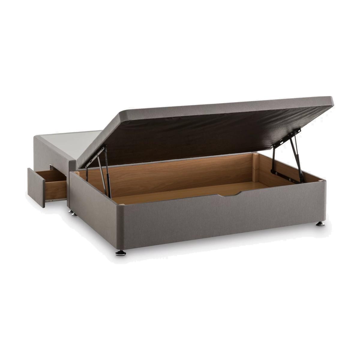 Made in the UK Practical and stylish, this divan base offers the ultimate storage solution, helping you to maximise your bedroom even if space is limited. With front half ottoman storage and 2 continental half drawers, this bed will give you plenty of flexible space to keep possessions neat and organised. Have you thought about a new mattress? Shop. Please note: not all our ranges are on display in our shops.