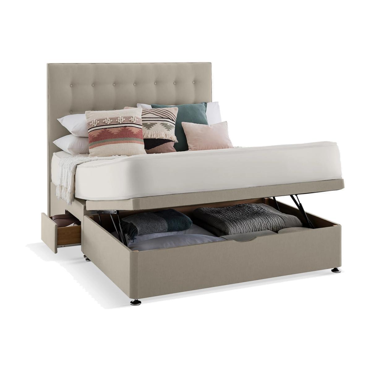 Practical and stylish, this divan base offers the ultimate storage solution, helping you to maximise your bedroom even if space is limited. With front half ottoman storage and two continental half drawers, this bed will give you plenty of flexible space to keep possessions neat and organised. The headboard is available to purchase separately. Choose from Silentnight's range of smooth velvet or flat woven fabrics. Smooth Velvet: Featuring a very fine high pile, matt look, and extreme softness. It's soft feel and low sheen ensures smooth velvet remains a timeless favourite in home interior design. Smooth velvet beds are an affordable way to bring a touch of luxury into the bedroom. Colours: mink, dusky pink & maritime. Woven: Featuring a soft and subtle feel which is durable and long lasting. This woven fabric is ideal for both traditional and contemporary styled bedrooms. Colours: ebony, slate grey, light grey & whisper All of Silentnight’s fabrics are Oeko-tex approved. The Oeko-tex standard 100 label involves testing for harmful substances and ensuring high product safety. Have you thought about a new mattress? Shop here. Please note: not all our ranges are on display in our shops.