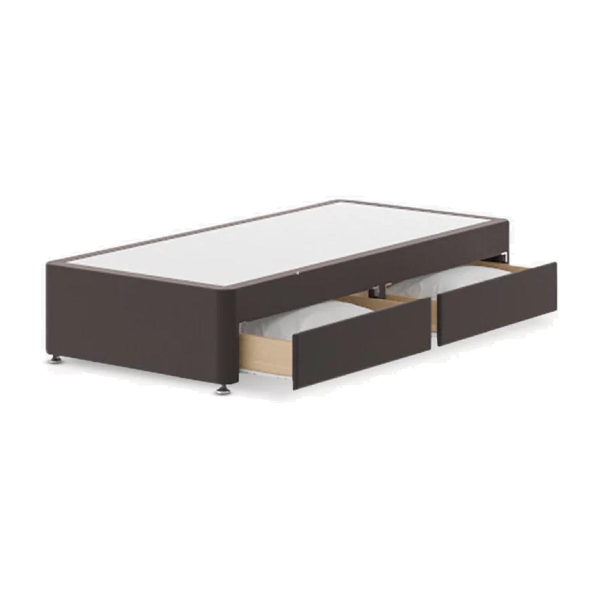 This divan base will work together with your mattress to create a bed that is comfortable and supportive for your body. The Silentnight two drawer base consists of two easy pull out drawers on one side of the divan, ensuring you make the most of your bedroom space and keep any items safely stored away. Available in a range of colours and sizes this base is a good fit for any bedroom. Choose from Silentnight's range of smooth velvet or flat woven fabrics. Smooth Velvet: Featuring a very fine high pile, matt look, and extreme softness. It's soft feel and low sheen ensures smooth velvet remains a timeless favourite in home interior design. Smooth velvet beds are an affordable way to bring a touch of luxury into the bedroom. Colours: mink, dusky pink & maritime. Woven: Featuring a soft and subtle feel which is durable and long lasting. This woven fabric is ideal for both traditional and contemporary styled bedrooms. Colours: ebony, slate grey, light grey & whisper All of Silentnight’s fabrics are Oeko-tex approved. The Oeko-tex standard 100 label involves testing for harmful substances and ensuring high product safety. Suitable for use with all types of mattress. Have you thought about a new mattress? Shop here. Please note: not all our ranges are on display in our shops.