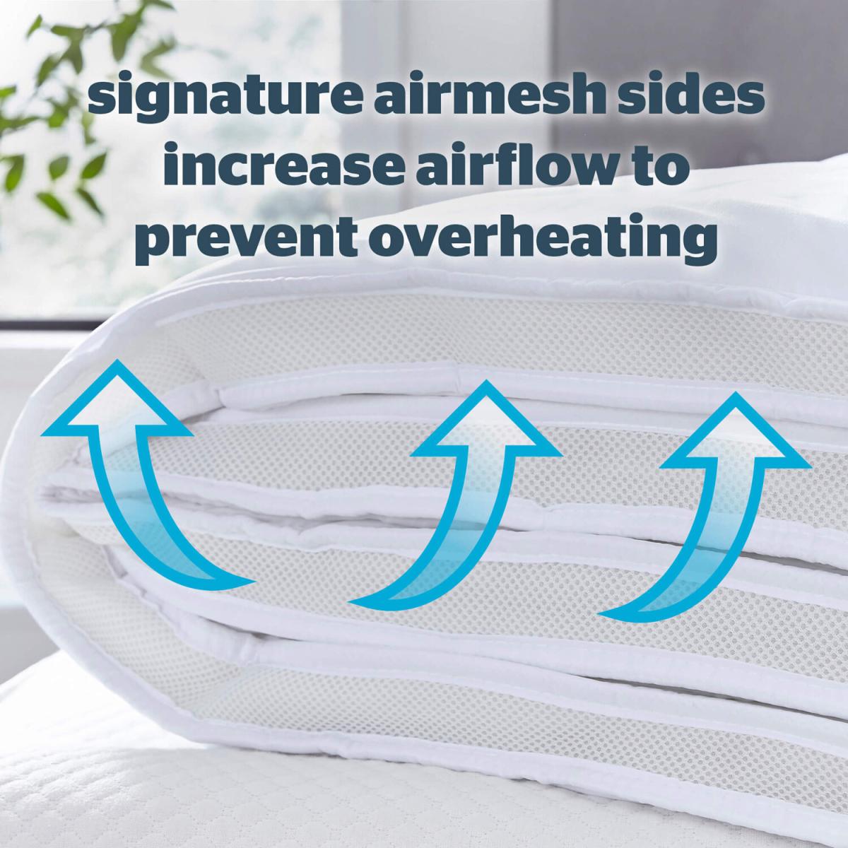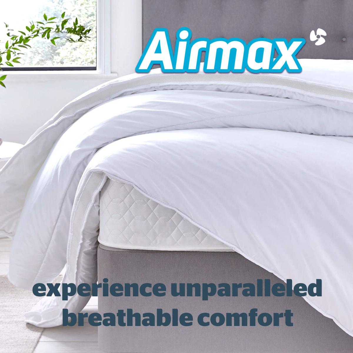 Allowing you to keep cool while sleeping, the Silentnight Airmax 10.5tog Duvet has been created with Silentnights signature airmesh sides to prevent overheating. Ideal for anyone who loves wrapping up tightly in their duvet for comfort, but finds they may become too hot, this high-tech duvet will help you to stay comfortable through every season.
