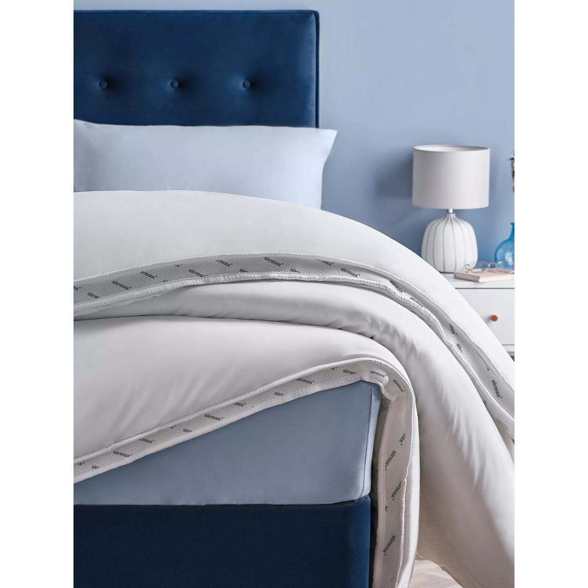 The Silentnight Airmax duvet has been specially constructed with air mesh sides which increase airflow inside the duvet, allowing unparalleled breath-ability. Designed to be kind to skin, does not include any contents likely to cause allergies, ensuring a comfortably refreshing night's sleep. Airmax technology houses a pocket of air between its layers providing extra insulation and softness, resulting in more warmth with less weight to help you stay cosy and comfortable without overheating. The 10.5 tog is ideal to use all year round. Made in the UK.