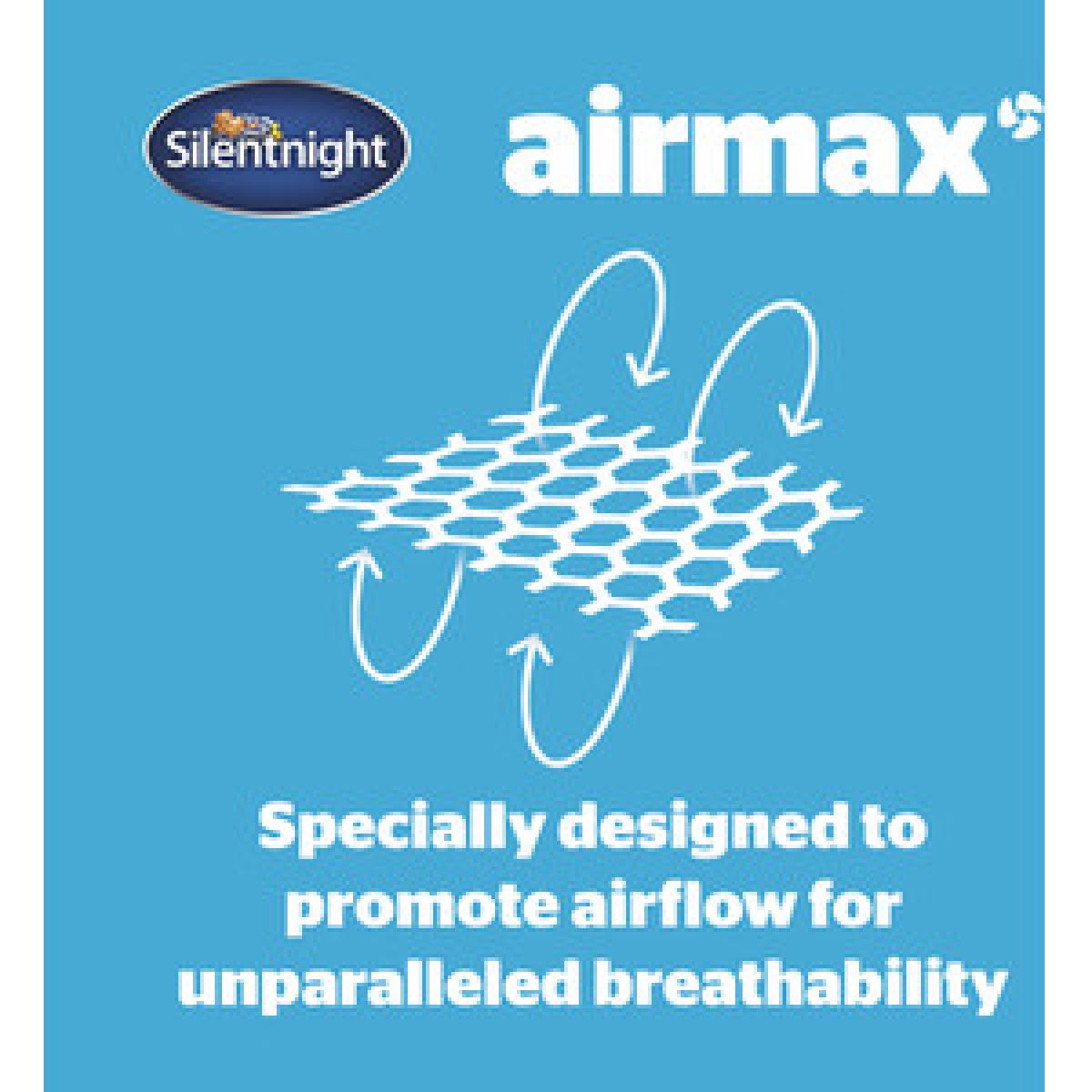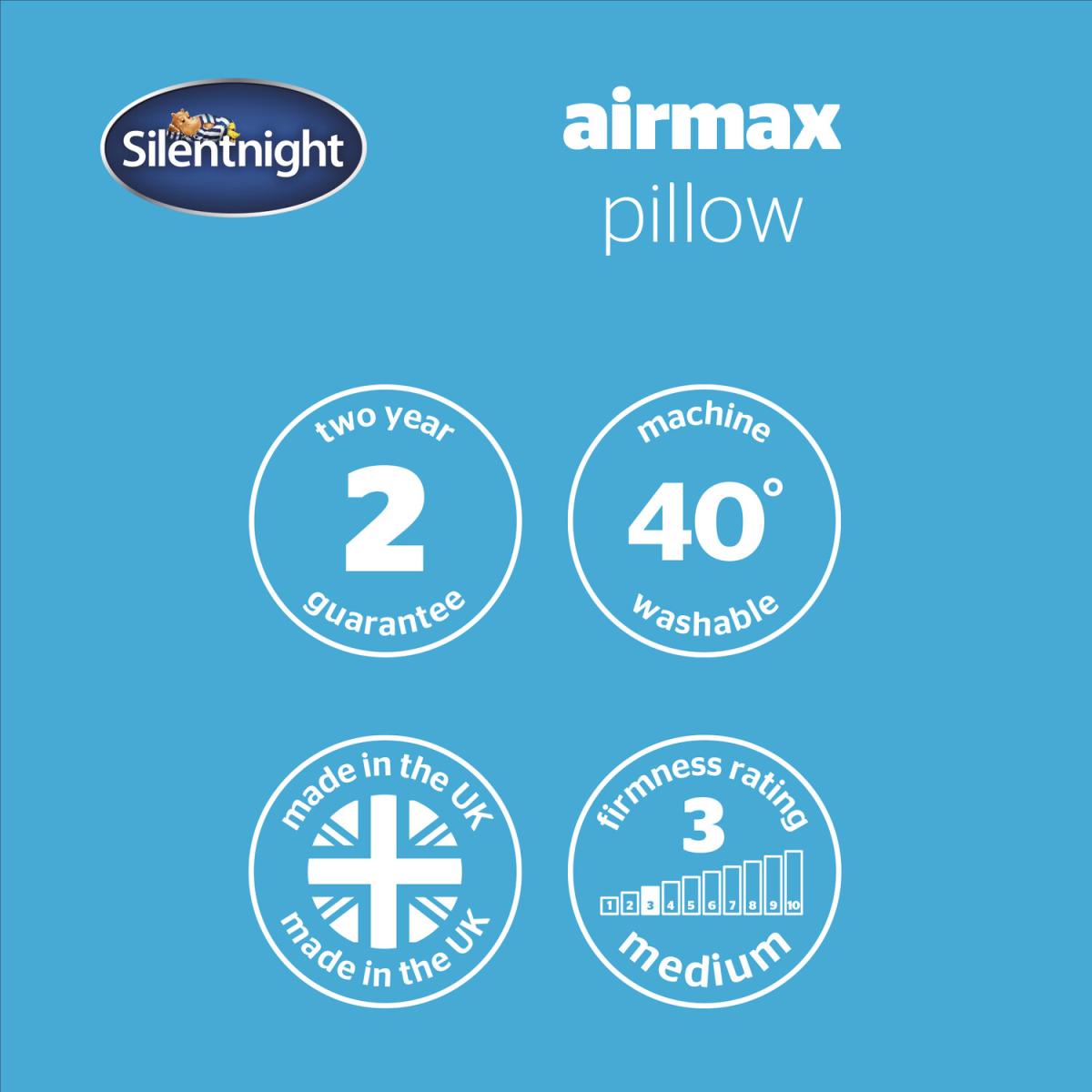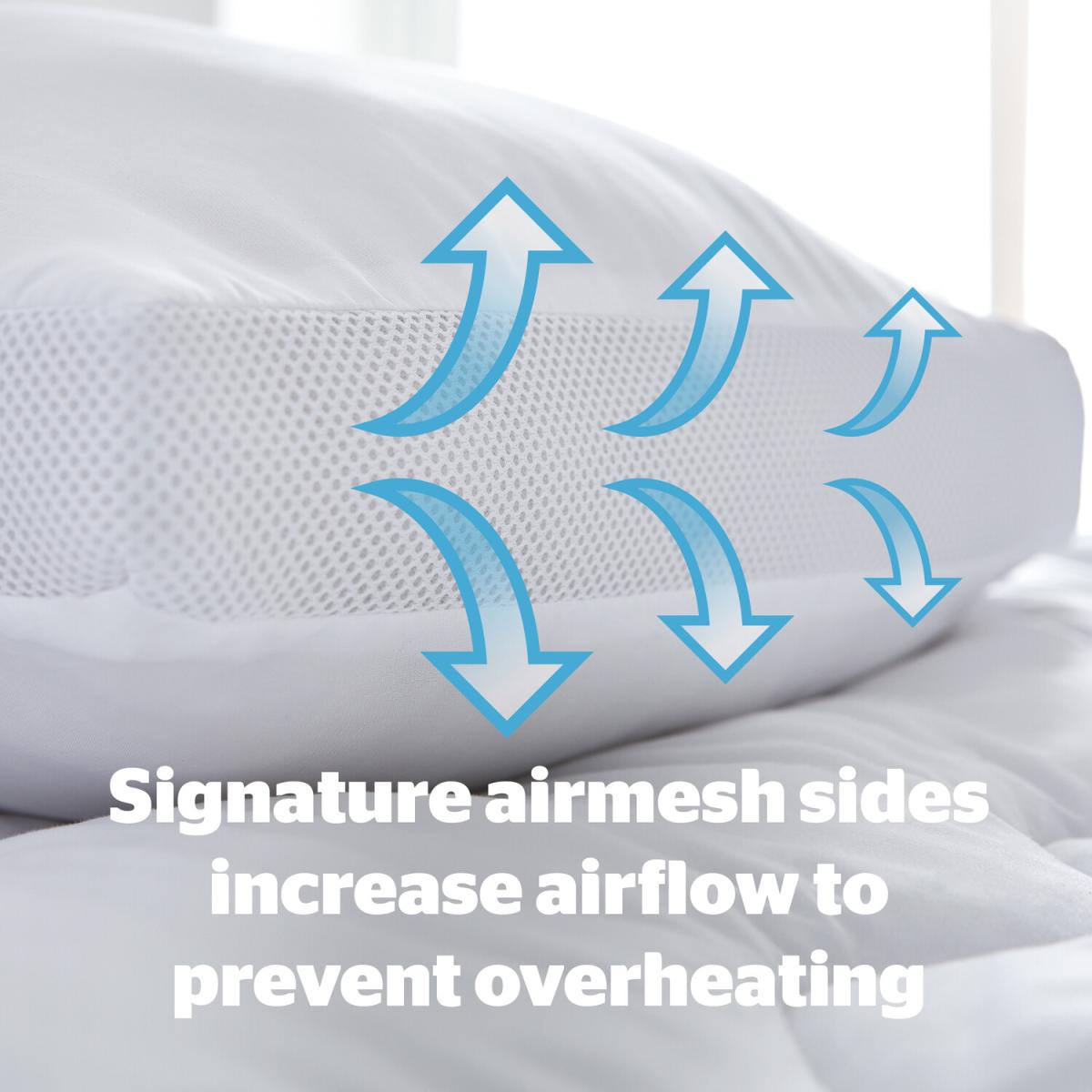 The Silentnight Airmax Pillow provides unparalleled breathability and comfort for a great night's sleep. Specially designed to increase airflow and circulation, the Airmax pillow features air mesh sides to help air to move freely around your head to prevent overheating and to keep you comfortable in every season.