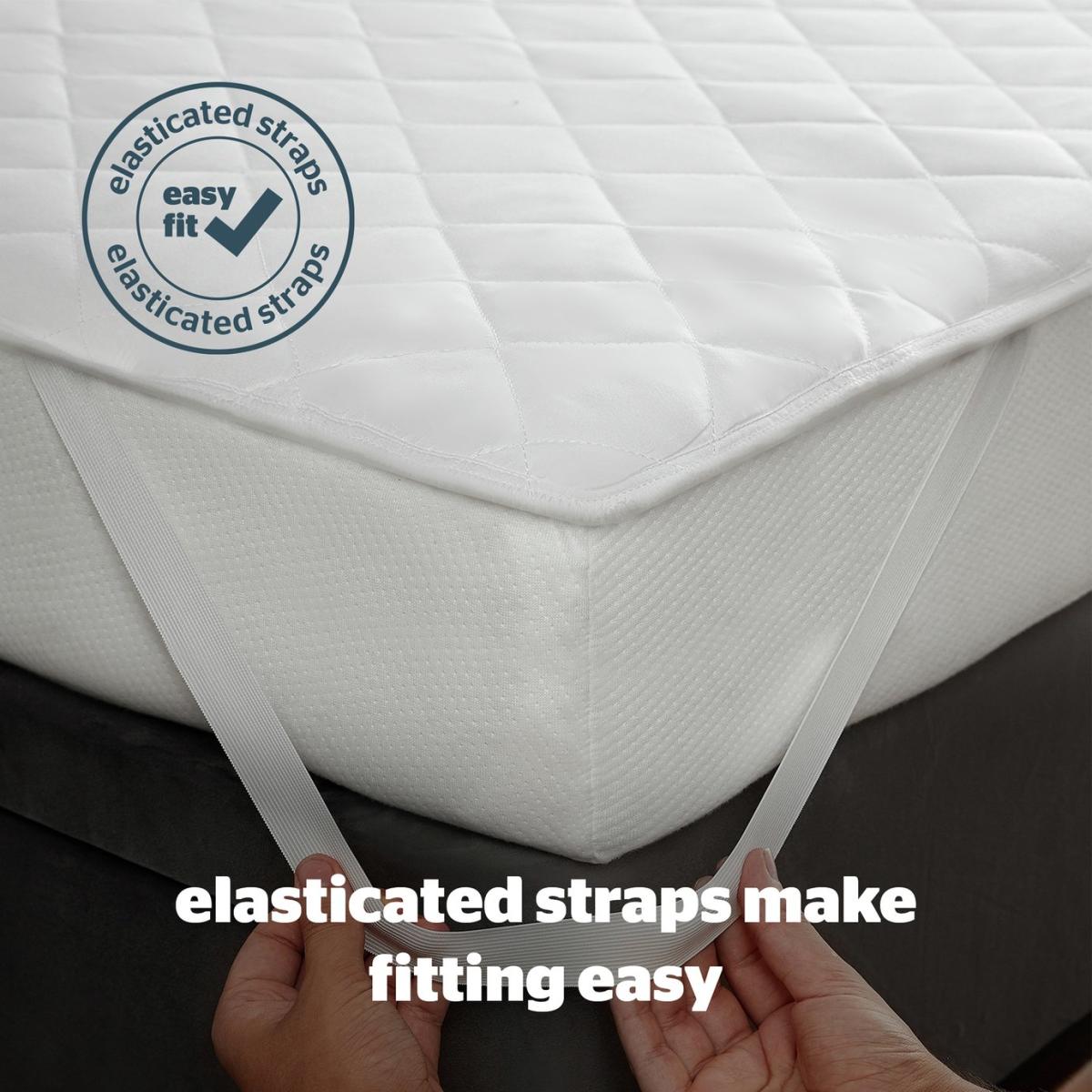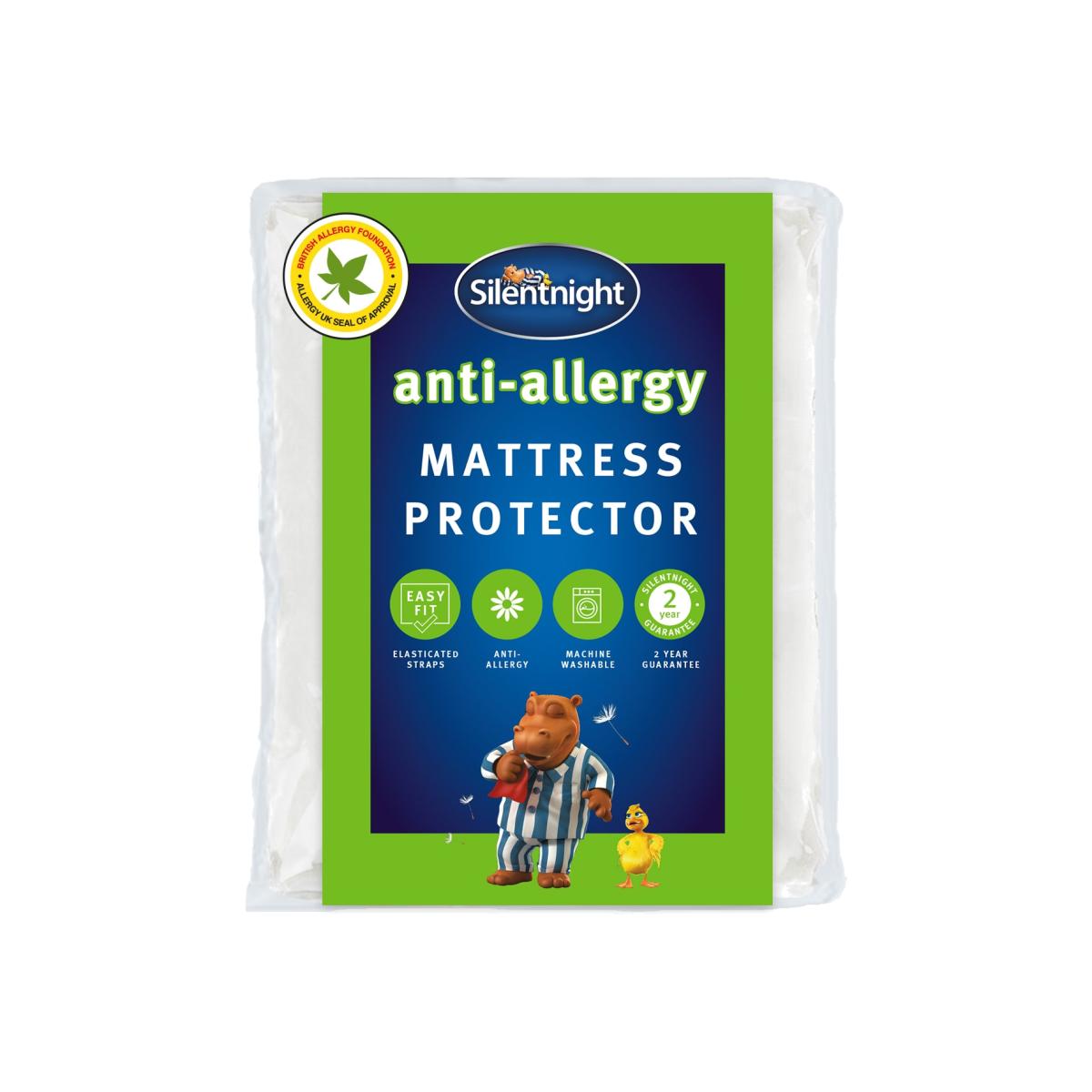 The Silentnight Anti-allergy Mattress Protector is filled with anti-allergy fibres that actively protects against bacteria and dust mites. This helps to prevent allergies and keep your bed feeling fresh and clean, whilst keeping you comfortable for a restful night's sleep. Our anti-allergy fibres are approved by the British Allergy Foundation, which means they have the ultimate seal of approval.. The mattress protector will protect and prolong the life of your mattress, helping to shield spills, stains and general wear and tear. Our anti-allergy fibres are approved by the British Allergy Foundation, which means they have the ultimate seal of approval. Suitable for single beds. Anti-allergy. 100% polyester microfibre cover. 100% polyester filling. Secured by elasticated corner tapes. Size L193, W93cm. Machine washable at 40 C. Suitable for tumble drying. Contains a biocide to help protect against bacteria and dust mite allergens. Active substance: Dimethyloctadecyl[3-(trimethoxysilyl)propyl]ammonium chloride.