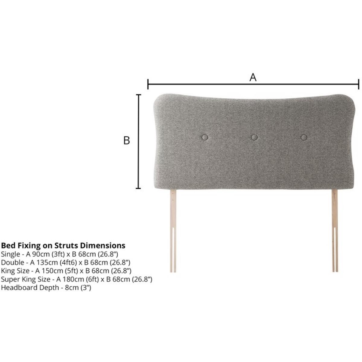 The Silentnight Austen Strutted Headboard combines timeless elegance with modern design, making it a perfect addition to any bedroom. Crafted from high-quality materials, this headboard features a classic, tailored look that adds a touch of sophistication to your space. Its soft yet supportive design provides added comfort when sitting up in bed, whether for reading, watching TV, or relaxing. The strutted construction allows for easy attachment to most standard bed frames, with an adjustable height feature to ensure a perfect fit and personalized comfort. Finished in a luxurious fabric, the Austen headboard enhances the overall aesthetic of your room, offering both style and function in one piece. Whether you're looking to create a refined focal point or simply improve the comfort of your bed, the Silentnight Austen Strutted Headboard is an excellent choice for adding both style and practicality to your bedroom. Bed Fixing on Struts - The bed fixing on struts option uses the traditional headboard design with 2 wooden fixing posts attached to the back. Features: Approved by the National Bed Federation (NBF) ensuring it has been manufactured to the highest UK standards Minimalistic curved buttoned design FSC Certified Timber - The mark of responsible forestry Available in a wide range of Silentnight fabrics and colours Free 5 year guarantee for total peace of mind Dimensions: Single - W 90cm (3ft) x H 68cm (2ft2) x D 8cm (3”) Double - W 135cm (4ft6) x H 68cm (2ft2) x D 8cm (3”) King Size - W 150cm (5ft) x H 68cm (2ft2) x D 8cm (3”) Super King Size - W 180cm (6ft) x H 68cm (2ft2) x D 8cm (3”) All screens vary in colour reproduction and whilst every effort has been made to display the colour as accurately as possible it is for guidance only.