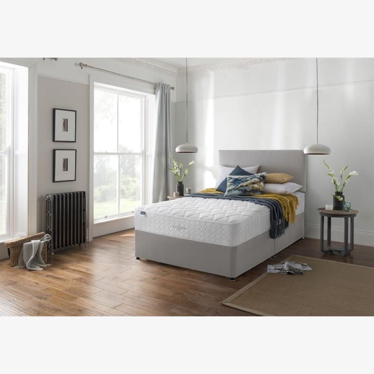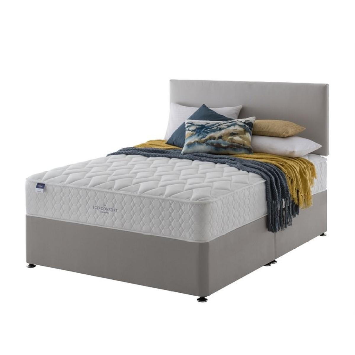 Note - The headboard pictured is not included but is available to purchase separately. You can view our range of headboards here. The base or frame pictured in the image may not be representative of the specific base you require. Please contact us for more information, if needed. The Cerise Eco Mattress features environmentally friendly comfort layers which allow natural airflow for a more invigorating and refreshing nights sleep. The unique zoned miracoil springs provide no roll together for less partner disturbance and zoned support where you need it most. Flame retardent without the use of any chemical treatments providing a fresh and clean sleeping environment. Miracoil Spring System - Silentnight’s unique and exclusive spring system. Even though people come in all shapes and sizes this clever spring system - exclusive to Silentnight - unlike ordinary springs that are circular, has its own unique shape that spreads your weight evenly across the bed relieving the pressure on the most painful part of your body such as your lower back. It offers zonal support for perfect spinal alignment. This system eliminates roll-together so less partner disturbance. Eco Comfort Layer - Featuring natural materials engendered from sustainable sources, the Eco Comfort layer is fully recyclable and highly breathable, allowing air to pass through for an invigorating and refreshing night's sleep. Fibres have been intelligently constructed vertically to offer extra support and help you move freely through the night. Zoned Support - Enjoy head-to-toe zonal support to provide total spinal and body support. The mattress is firmer in areas where greater support is needed, such as the lumber region and softer in other areas, surrounding the hips and shoulders. Hypo-Allergenic - Dust mites cannot survive on the product, allowing a healthy environment and peaceful sleep. Quilted Cover - Quilted sleeping surface and mattress borders to provide soft cushioning and added comfort. 100% Recyclable - This mattress is 100% recyclable at the end of its life. Double Sided Regular Turn Mattress - Turn over and rotate your mattress once a week for the first 3 months and then once a month thereafter to help the fillings settle evenly. The mattress firmness rating is Firm but please note that this should be considered as a guide only. The firmness of your mattress is entirely a personal decision based on your comfort and support needs. The Platform Top Divan Base is the ideal divan base to pair with your Silentnight mattress. It measures 38cm high including feet (34cm excluding feet). This base can be finished in a variety of upholstery finishes and features contemporary silver feet. It's sturdy and supportive and is available in a range of storage options to perfectly suit your needs. Firm mattress 5 Year Guarantee Made in the UK Dimensions: Single - W 90cm L 190cm D 27cm Small Double - W 120cm L190cm D 27cm Double - W 135cm L 190cm D 27cm King - W 150cm L 200cm D27cm Super King - W 180cm L 200cm D 27cm All screens vary in colour reproduction and whilst every effort has been made to display the colour as accurately as possible it is for guidance only.