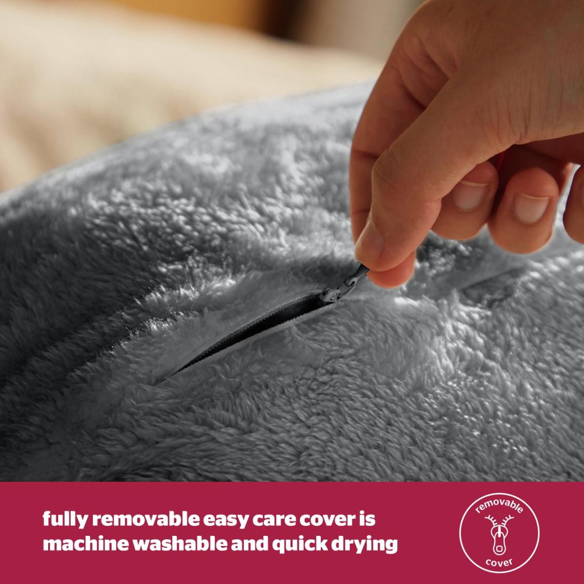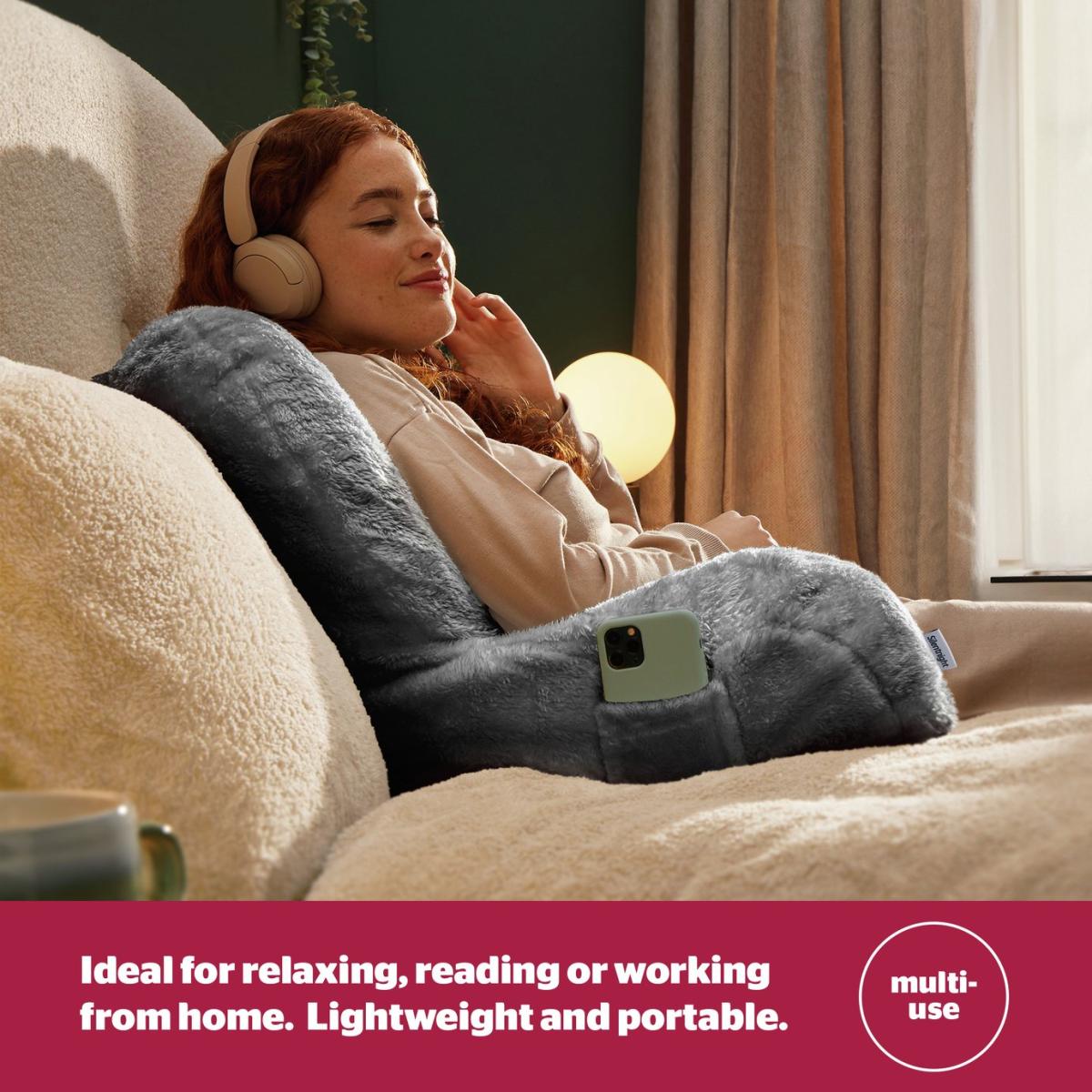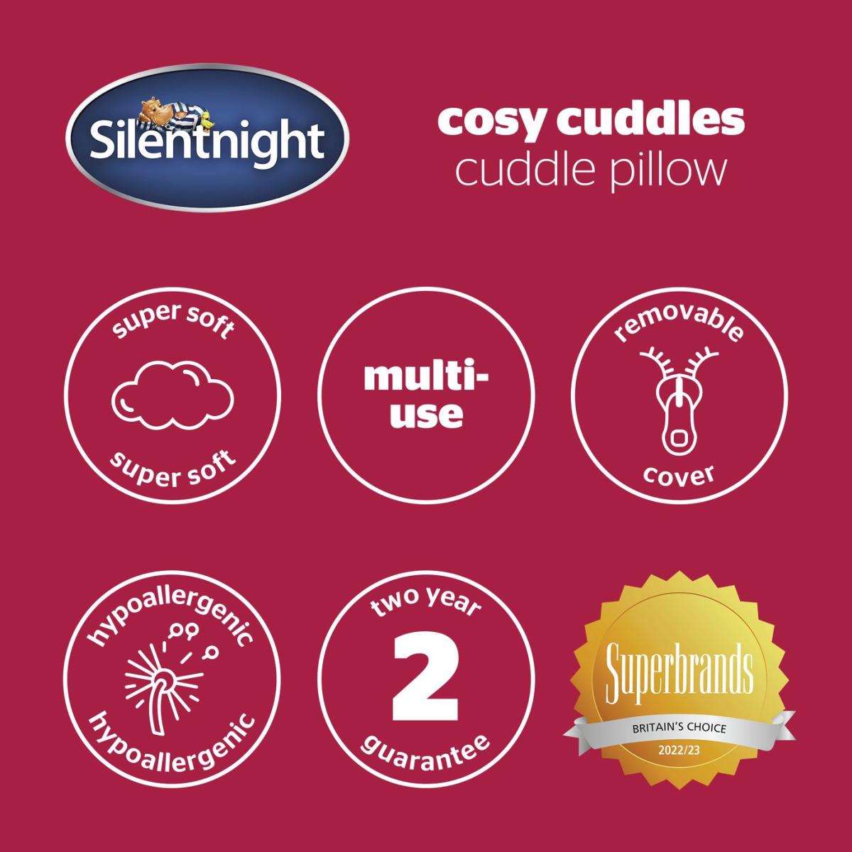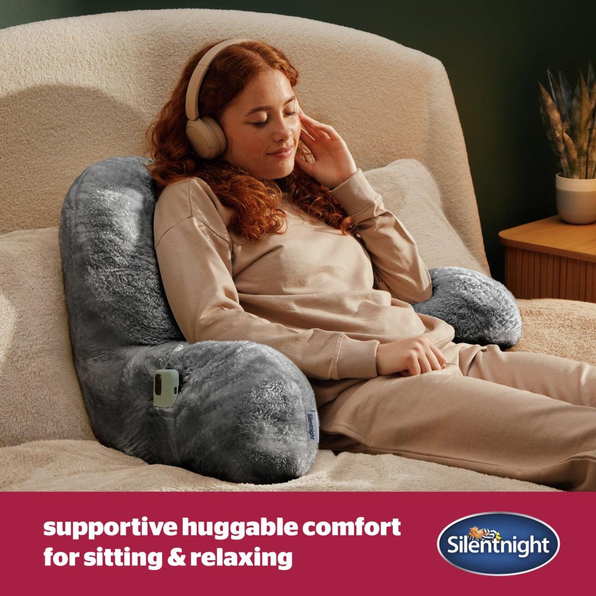 Get ready to cuddle! Specially shaped for huggable comfort and support while you relax, with a high back and arm rests. Covered in a warm, cosy and irresistibly snuggly sherpa cover. The Cuddle Pillow is the ideal companion when working from home and is great for people who spend long hours sitting down. You'll find handy side pocket storage for your phone, earphones, snacks and more. The cover is machine washable and quick drying for convenience. Pack quantity: 1. Cover made from 100% polyester. Filling made from 100% polyester. Suitable for back sleepers. Size L50, W50cm. 1.75kg. Machine washable at 40 C. Suitable for tumble drying. Non-allergenic. Manufacturer's 2 year guarantee.