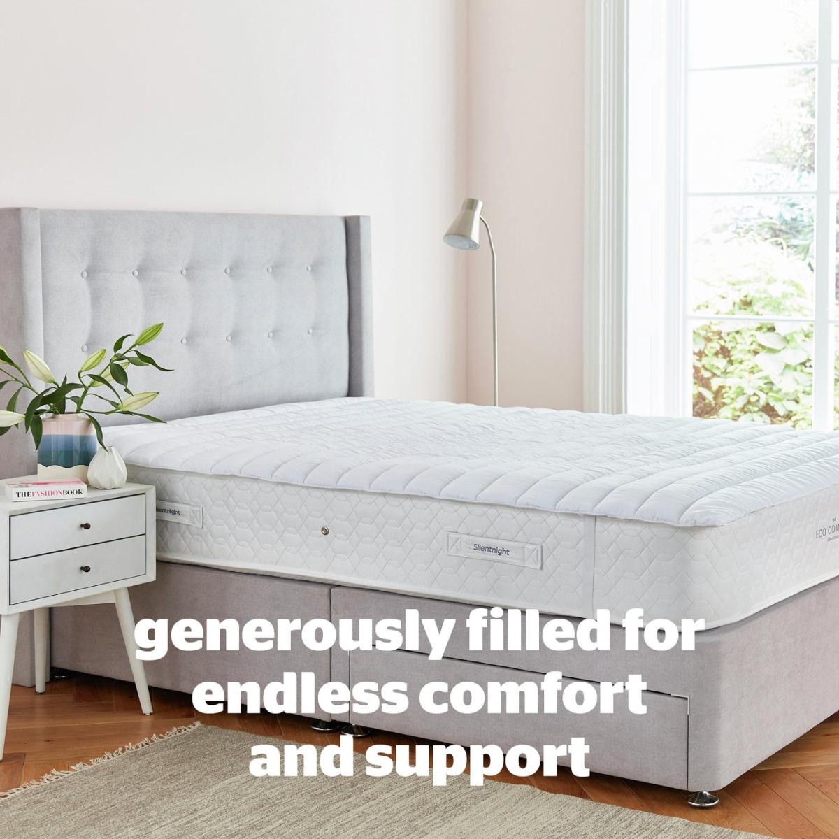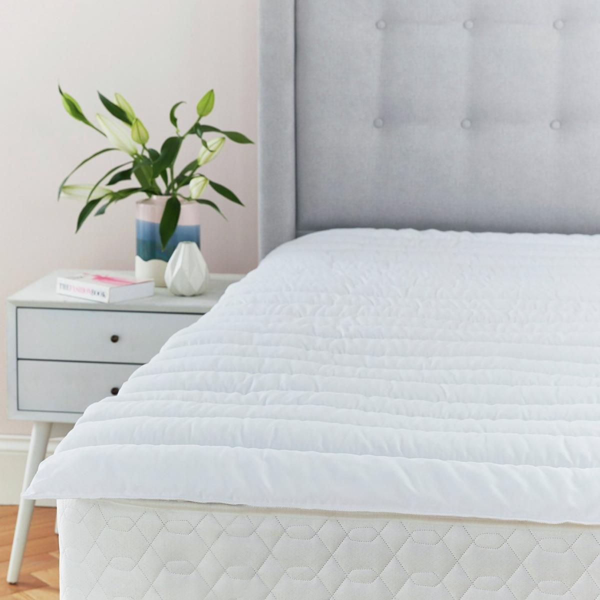 Sink into deeper sleep. Generously filled for endless comfort and support, helping you to sleep more deeply every night. The Silentnight Deep Sleep Mattress Topper is generously filled with hollowfibre and covered in soft microfibre which results in a soft, cosy topper that provides gentle support and adds an extra layer of comfort to any mattress. The topper is hypoallergenic which means it's kind to skin and does not include any contents likely to cause allergies, it's also machine washable so you can keep enjoying a deep sleep. Set includes: 1 topper. Suitable for double beds. Size L193, W137, D2.5cm. Cover made from 100% polyester microfibre. 100% polypropylene reverse. 100% polyester hollowfibre filling. Secured by elasticated corner straps. Non-allergenic. Cover is machine washable and suitable for tumble drying.
