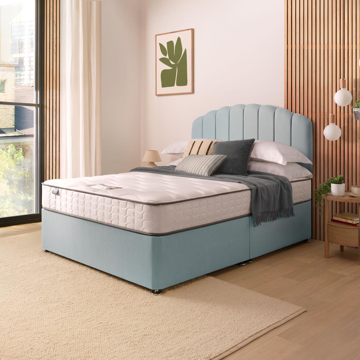 * Divan Bed* Bed Mounted Headboard* Includes Mattress* Soft, Fabric Upholstery This all-inclusive divan set seamlessly marries functionality and elegance, featuring a refined headboard, and an extraordinary 800 pocket mattress. Silentnight's cutting-edge Mirapocket technology takes centre stage, providing 800 individual pocket springs for unparalleled comfort, support, and pressure relief. The zoned Mirapocket support system ensures even weight distribution, promoting effortless movement and enhancing spinal alignment, while the edge-to-edge support creates a haven for an undisturbed night's sleep. The mattress's responsive pocket springs adapt to your body weight, delivering a luxurious blend of comfort and personalised support. Plump filling layers and a sumptuously soft knitted mattress cover add to the lavishness, with a hypoallergenic finish for peace of mind. The medium-firm comfort rating caters to those who transition between back and side sleeping positions. Please note, the mattress binding colour may differ slightly from image. This does not affect the quality or use of the final product.