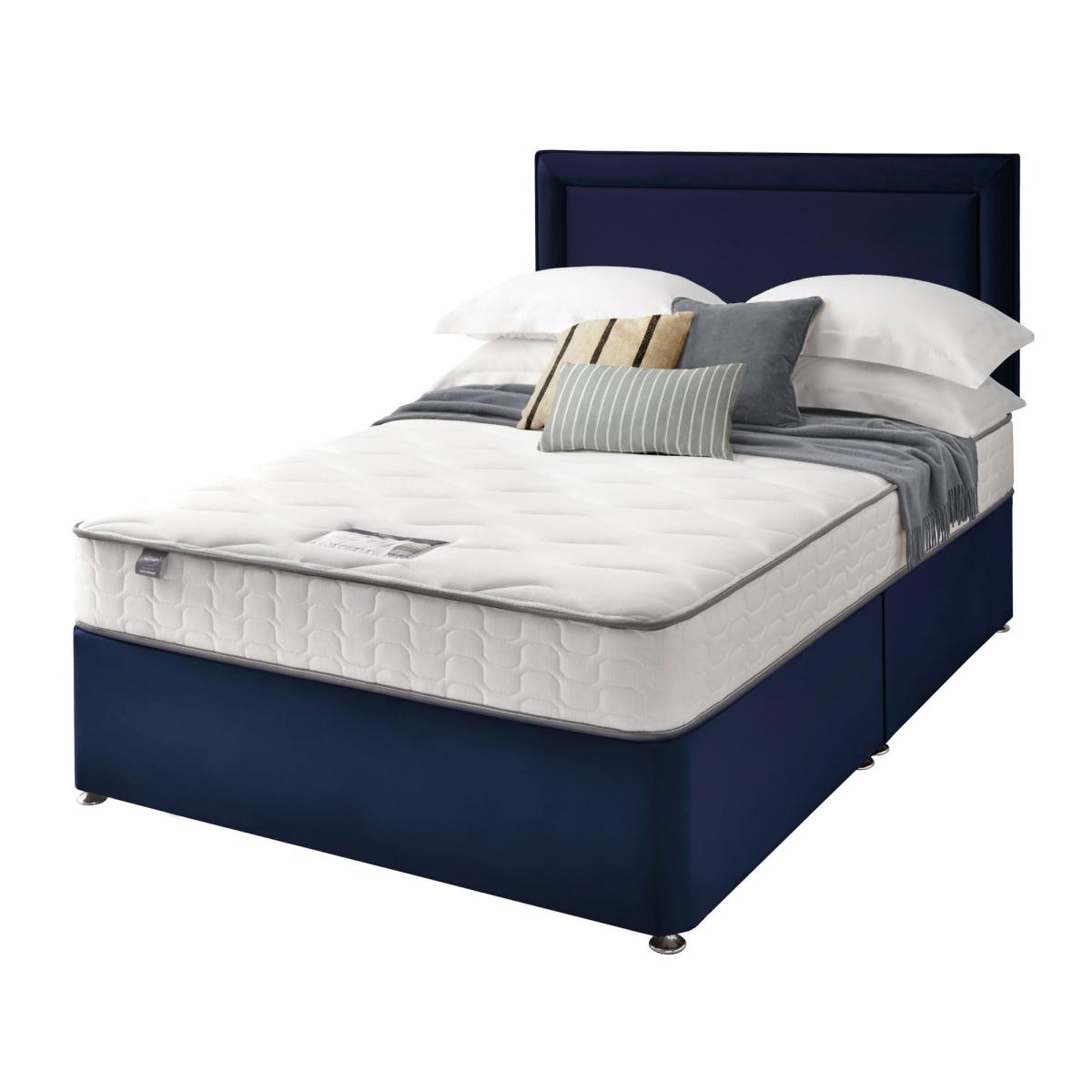 * Divan Bed* Bed Mounted Headboard* Includes Mattress* Soft and trendy velvet upholstery This all-inclusive divan set seamlessly marries functionality and elegance, featuring a refined headboard, and an extraordinary 800 pocket mattress. Silentnight's cutting-edge Mirapocket technology takes centre stage, providing 800 individual pocket springs for unparalleled comfort, support, and pressure relief. The zoned Mirapocket support system ensures even weight distribution, promoting effortless movement and enhancing spinal alignment, while the edge-to-edge support creates a haven for an undisturbed night's sleep. The mattress's responsive pocket springs adapt to your body weight, delivering a luxurious blend of comfort and personalised support. Plump filling layers and a sumptuously soft knitted mattress cover add to the lavishness, with a hypoallergenic finish for peace of mind. The medium-firm comfort rating caters to those who transition between back and side sleeping positions. Please note, the mattress binding colour may differ slightly from image. This does not affect the quality or use of the final product.