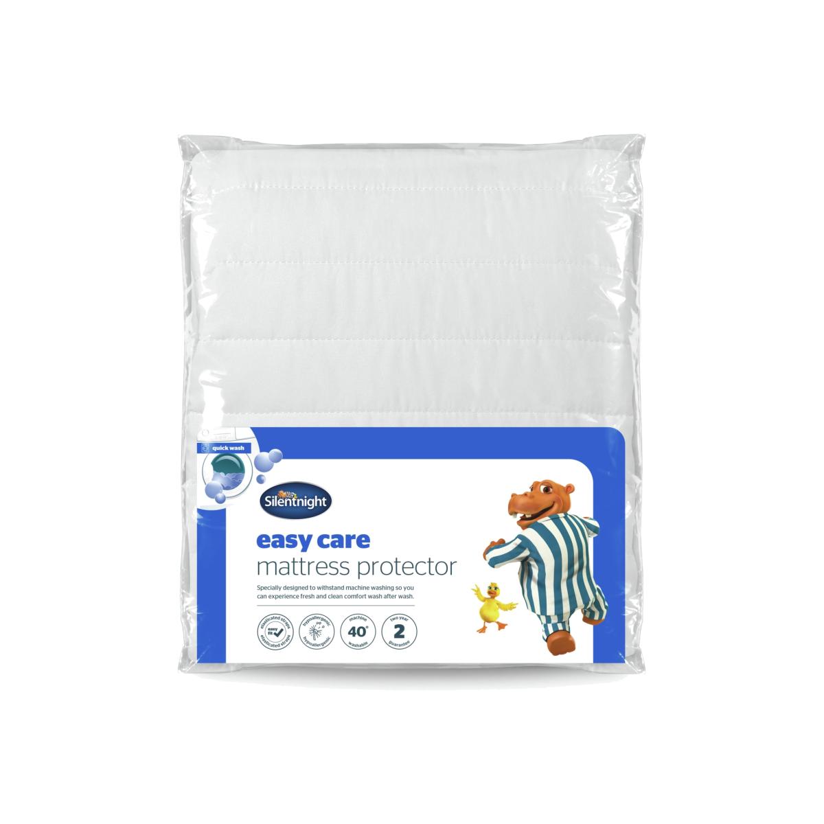 Specially designed to withstand machine washing so you can experience fresh and clean comfort wash after wash. The Silentnight Easy Care Mattress Protector will help protect and prolong the life of your mattress, shielding from spills, stains, and general wear and tear. The protector features easy-fit elasticated straps. The mattress protector is hypoallergenic which means it does not contain any materials that are likely to cause allergies. It come with a 2 year manufacturer's guarantee. The soft touch quilted cover is filled with soft and comfortable fibres which helps to add an extra layer of cushioned comfort to your mattress. Suitable for king size beds. Polyester cover. Secured by elasticated corner tapes. Size L203, W152cm. Machine washable at 40 C. Suitable for tumble drying.