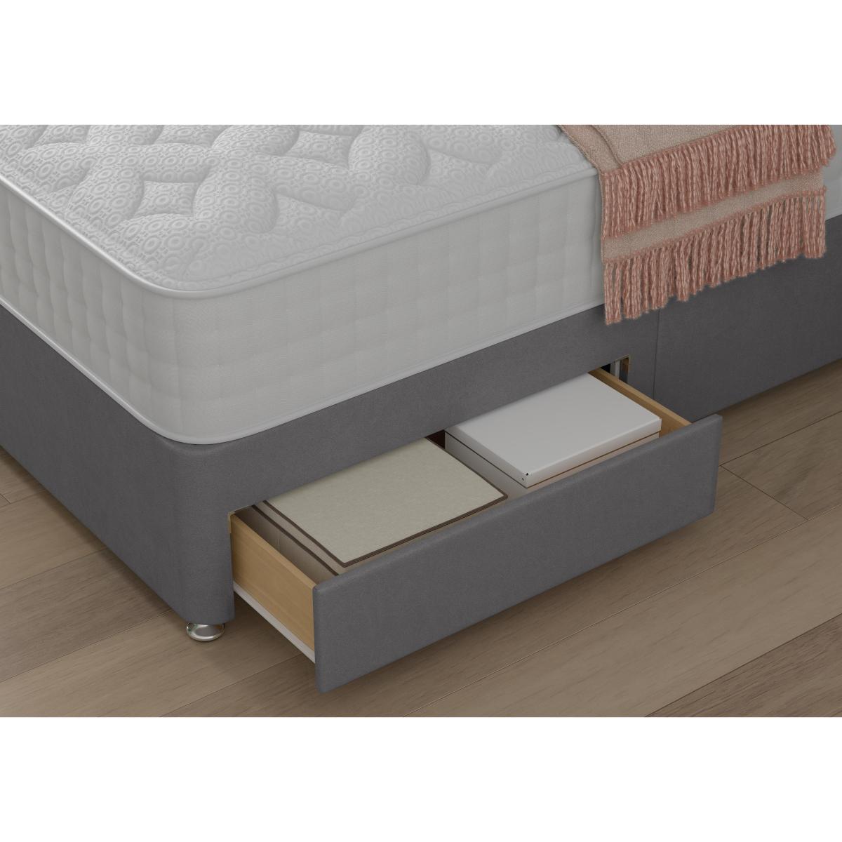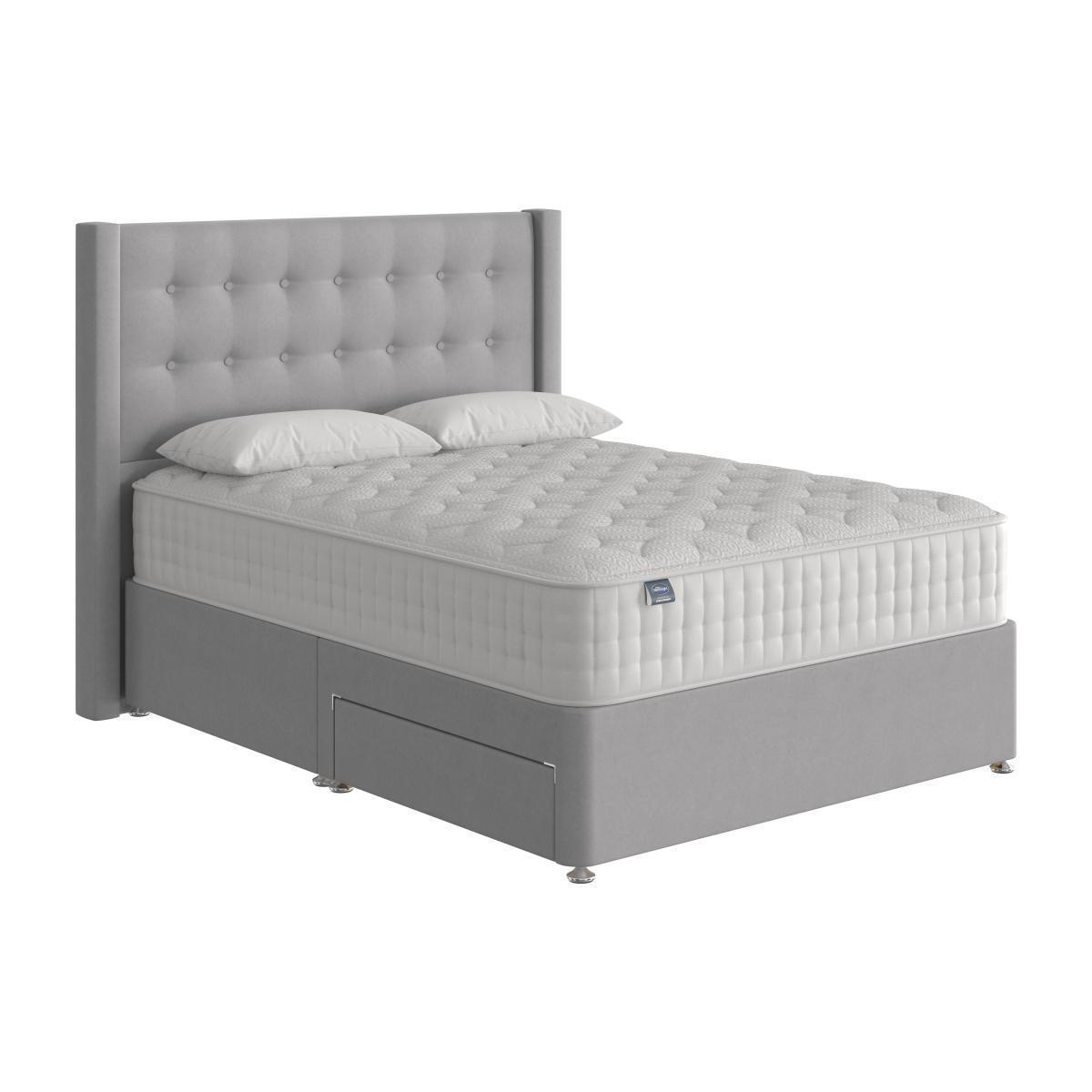This eco-friendly divan set keeps you comfy with pocket springs, cooling Geltex and a comfort layer of fibres made from recycled marine bottles. With useful drawer storage too. Headboard shown available separately. Why you'll love it. Eco-friendly, great value divan set from Silentnight. 2000 responsive pocket springs. A comfort layer of eco-fibres made from recycled marine bottles. Plus a layer of innovative, temperature regulating Geltex. Geltex draws heat from your body as you sleep. So you stay fresh and cool all night long. A ventilated border promotes airflow. Easy care, non-turn mattress. You only need to rotate it occasionally. Luxury fabric upholstered divan base in a wide choice of colours. With no drawers or drawer storage in a choice of configurations. UK made. A Furniture Village exclusive. What you need to know. Mattress type: Pocket springs with Geltex. Depth: 32cm. Firmness: Medium feel. Springs: 2000 pocket springs. Pillow Top: No. Fillings: Pocket springs topped with temperature regulating Geltex. Borders:Ventilated.li>. Edge to edge support: Yes. Cover: Knitted. Requires turning: No. Sizes: Single, double, king, super king. Type of base: Platform top. Drawer configurations available: 2 drawer, 4 drawer, 2+2 drawer. Double, king and super king divan bases are delivered in two pieces for ease of delivery. Mattress care: Please allow mattress to fully recover before use. It may have a faint odour which will dissipate after airing for 4 hours. Due to the pressure relieving properties of the material it may take some time before you become accustomed to the level of comfort and support. Rotate regularly to minimise settling. We recommend the use of a mattress protector.