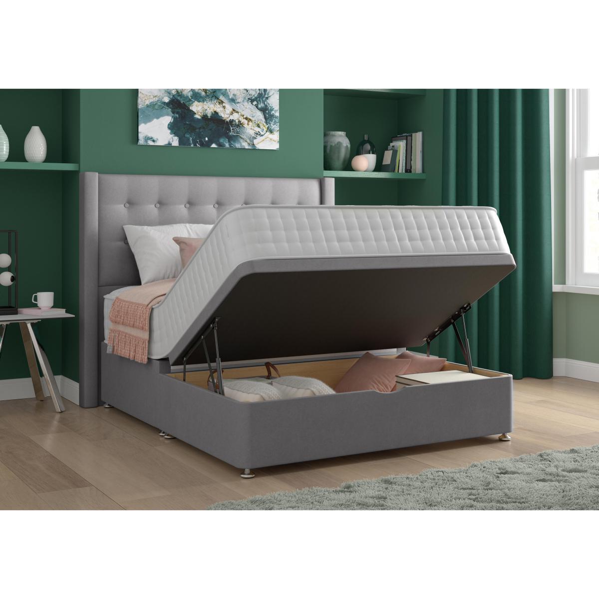 Eco-friendly half ottoman divan set with 2000 responsive pocket springs, cooling Geltex and a comfort layer of fibres made from recycled marine bottles. Headboard shown available separately. Why you'll love it. Eco-friendly, great value mattress from Silentnight. 2000 responsive pocket springs. A comfort layer of eco-fibres made from recycled marine bottles. Plus a layer of innovative, temperature regulating Geltex. Geltex draws heat from your body as you sleep. So you stay fresh and cool all night long. A ventilated border promotes airflow. Easy care, non-turn mattress. You only need to rotate it occasionally. Luxury fabric upholstered divan base in a wide choice of colours. Easy to access half ottoman divan storage. UK made. A Furniture Village exclusive. What you need to know. Mattress type: Pocket springs with Geltex. Depth: 32cm. Firmness: Medium feel. Springs: 2000 pocket springs. Pillow Top: No. Fillings: Pocket springs topped with temperature regulating Geltex. Borders:Ventilated.li>. Edge to edge support: Yes. Cover: Knitted. Requires turning: No. Sizes: Single, double, king, super king. Type of base: Platform top. Storage: half ottoman. Double, king and super king divan bases are delivered in two pieces for ease of delivery. Mattress care: Please allow mattress to fully recover before use. It may have a faint odour which will dissipate after airing for 4 hours. Due to the pressure relieving properties of the material it may take some time before you become accustomed to the level of comfort and support. Rotate regularly to minimise settling. We recommend the use of a mattress protector.