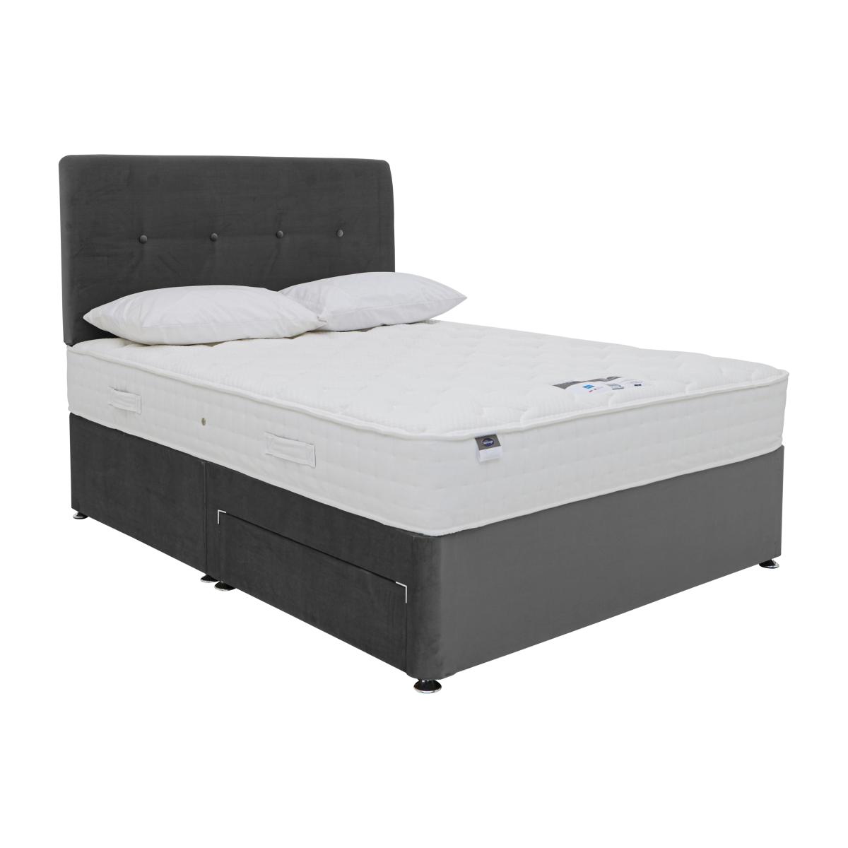 Who knew eco-friendly beds could be so comfortable? Silentnight’s Eco ranges pamper you from head to toe with their unique Miropocket or Miracoil spring systems in a choice of comfort and firmness levels plus a breathable, hypoallergenic Eco Comfort Fibre™ layer. This innovative layer is made from 100% recycled bottles, and allows natural airflow so you stay fresh and cool all night long. The platform top divan bases have drawer or ottoman storage or a combination of both and, like the headboards, come in a choice of attractive shades. Made in the UK for Furniture Village.. Great value eco-friendly divan bed with 800 zoned pocket springs. Temperature regulating, hypoallergenic Eco Comfort Fibre™ layer. Platform top base with choice of drawer storageHeadboard is an optional extra. Eco friendly and fantastic value for money, the Silentnight Eco Pocket Divan Set is designed to give you a fresh, cool and very comfortable night’s sleep. The pocket sprung mattress has 800 zoned Mirapocket pocket springs in king size, supporting you just where you need it most in three zones, and a soft micro-quilted cover. But what’s really special is the Eco Comfort Fibre™ layer which is temperature regulating, breathable and hypoallergenic – allowing natural airflow so you stay fresh and cool. This innovative layer is made from 100% recycled bottles so it’s great for the environment as well as your health. The mattress rests on a platform top divan base with a choice of drawer storage, in a selection of chic colours. If you wish, add one of the stylish headboards from the range to complete your bed, they’re available to buy separately. British made by Silentnight, exclusively for Furniture Village. Part of the Silentnight Eco Pocket range which includes a standalone mattress. This divan set is also available in a single bed size. This divan set comes with a no-turn mattress, which should be rotated every two months. The mattress should be aired for four hours after delivery to freshen and remove any aroma from storage. It may take time for your mattress to attain its full size once the springs have settled to the correct position. This is due to the mattress being upright during transit. Settlement of fillings and indentations caused by body weight compressing the fillings are natural and not considered defects. Product images are representative. Find out more.